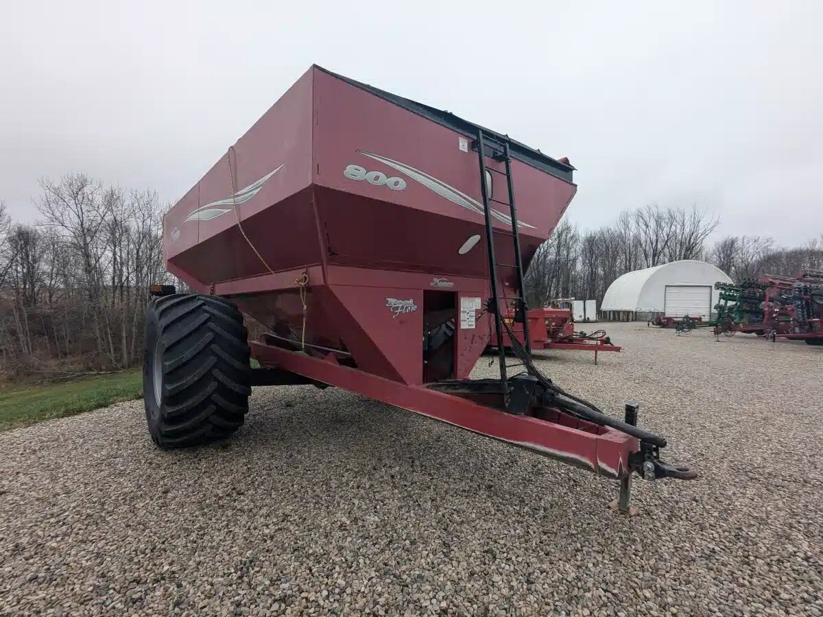 2007 Demco 800 Grain Cart. 800 bu Buggy w/ Pintel Hitch, 1000 RPM PTO, 18-inch Auger, Roll Tarp. New 900/60R32RT600 Tires. New LED Lights & Camera.