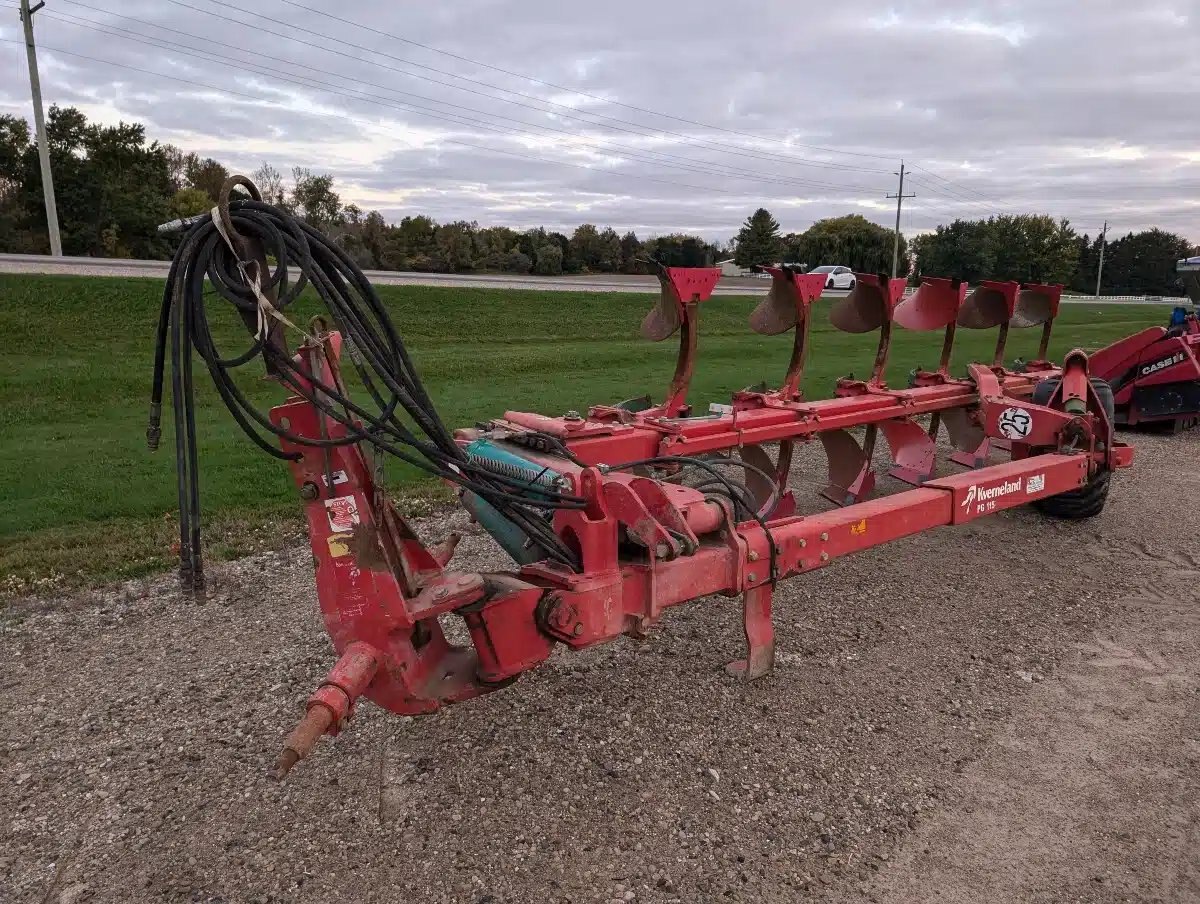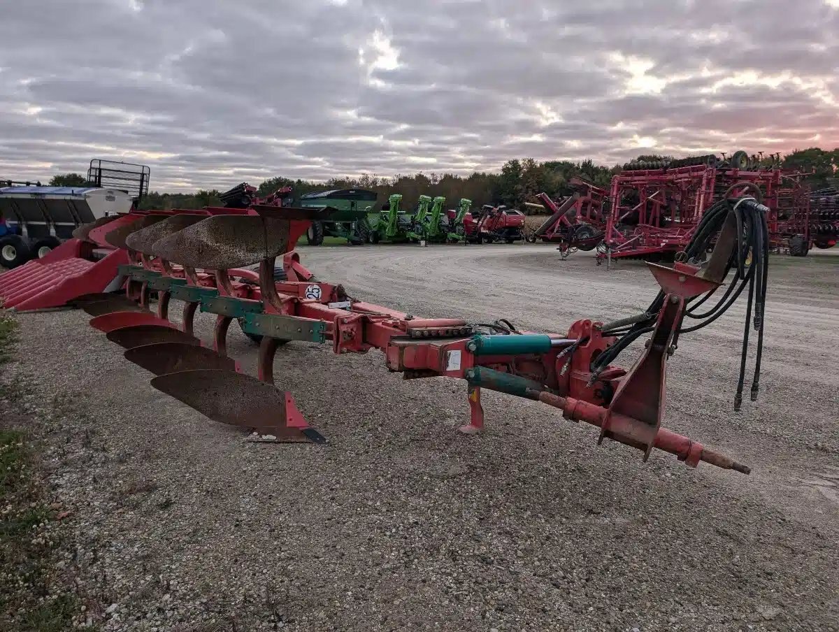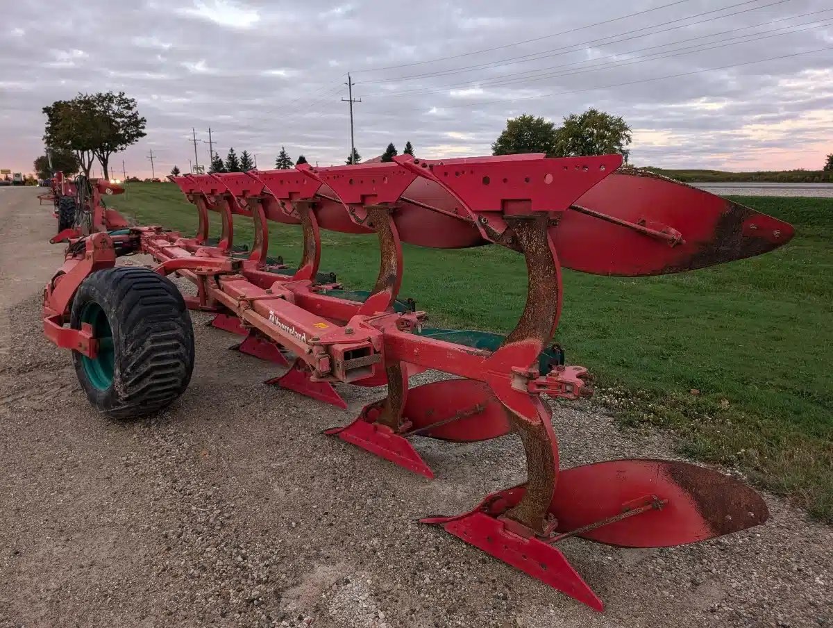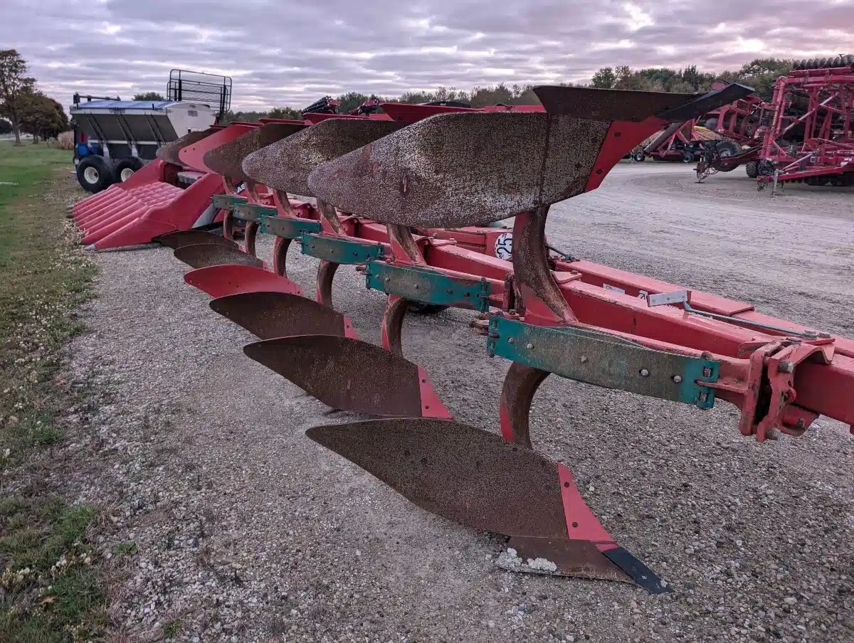 Kverneland 115 Roll Over Plow. Semi Mounted 6 Fourrow Vari Width Unit w/ Extra Spring, On Land Tail Wheel and Coulters Not Installed.