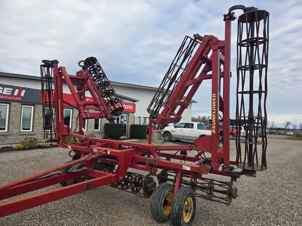 2006 Sunflower 7252-42 Crumbler. 2006 42ft 5 Section Double Fold w/ Adjsutable Tongue, Round Bar Baskets and Dual 9.5L-15 Wheels.