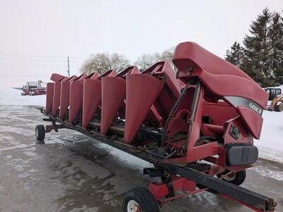 Calmer 830 Corn Head. 8 Row Unit w/ 30" Spacing, Poly Snouts and Manual Deck Plates. Header Carts Available but not...