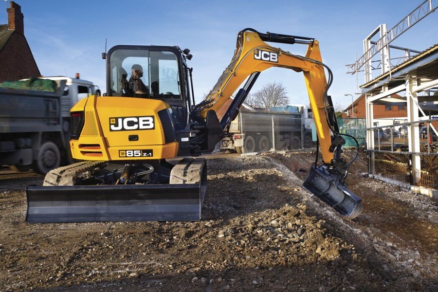 - The JCB 85Z has excellent front visibility courtesy of a 70/30 front split windshield. What’s more, there’s a clear view of the front right track for easy, safe trench digging and maneuvering. Overall we have 11% more visibility than prior models.