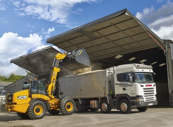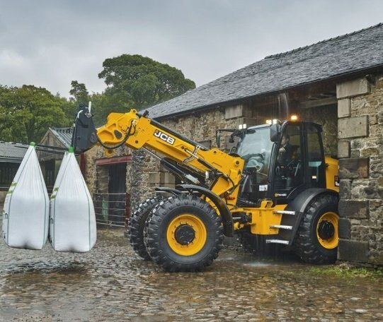 The JCB TM420 Agri telescopic wheel loader features a Tier 4 Final-compliant, 4.8 liter JCB EcoMAX engine that produces 145 hp (108 kW) and 413 ft-lb (560 Nm) of torque with variable geometry turbo.