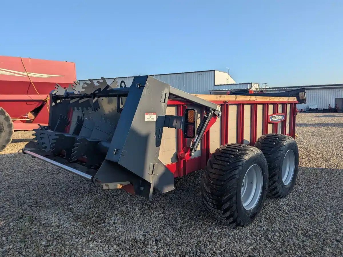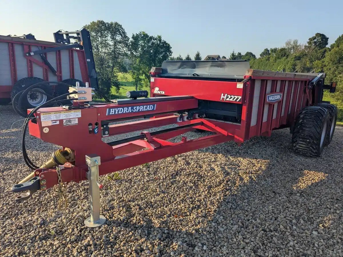 2023 Hagedorn 2277 Hydra Push Manure Spreader. 524 Heaped / 270 Struck cu/ft Capacity, Dual Horizontal Beaters, Oscillating Tandem axles, 550/60R22.5 Traction Implement Radial Tires, Removable Beater Assembly, Hydraulic End Gate and 24000lb Carrying Capacity. Old Stock Discount Price.