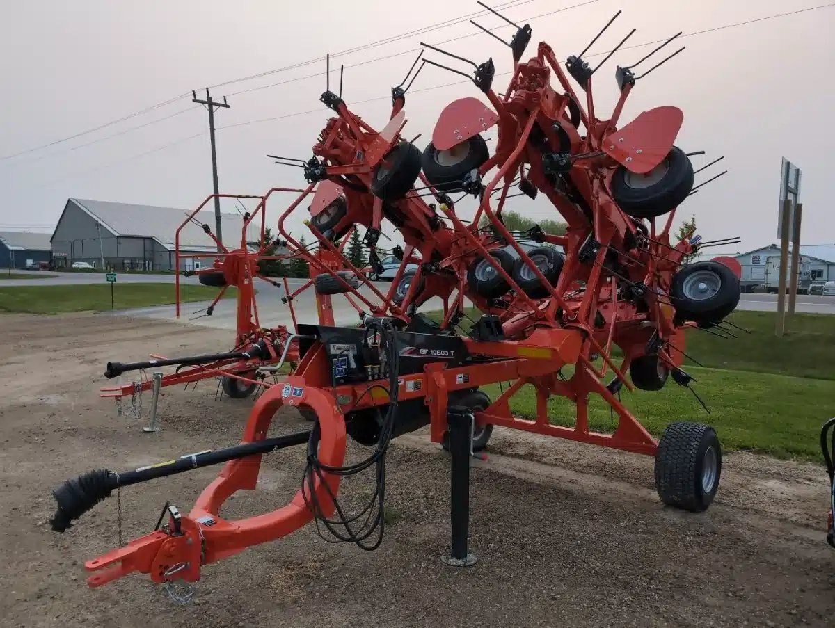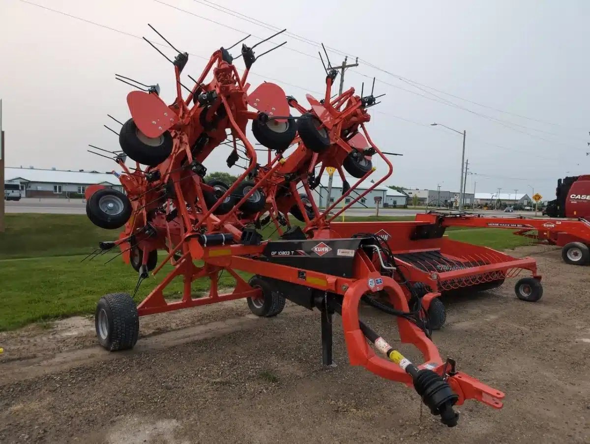 2025 Kuhn GF10803T Tedder. Trailing 10 Rotor Unit w/ 35.5Ft Working Width, Hydraulic Fold, Transport Cart, 540 pto and Draw Bar Hitch.