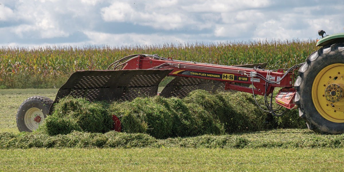 Features 28’ of continuous merging with (2) 14’ independent heads Best value per linear foot of machine width for a 2-head continuous merger. H&S patented SOFT-SHOE suspension system reduces field damage from head scuffing. Patented center cam/center drive design provides smooth, clump-free windrows. NO BUNCHING! WIDEST cross-conveyor belt in its class a...