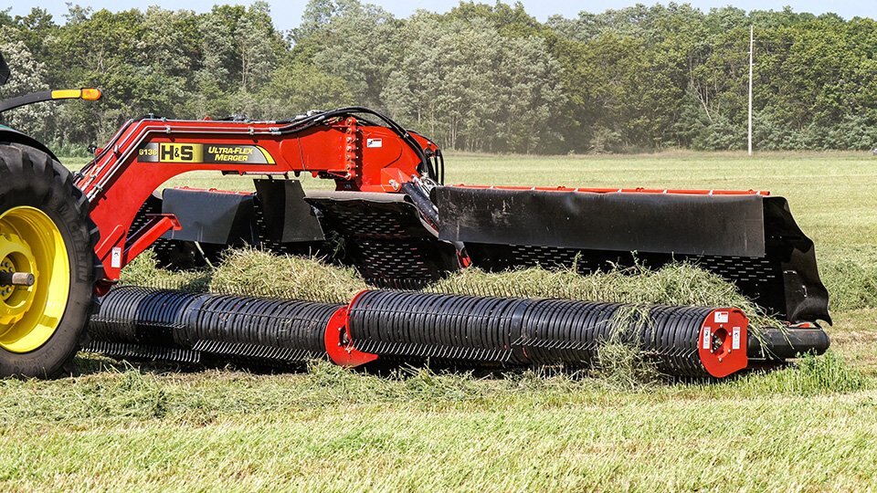 Introducing the NEW triple-head merger from H&S! The UF6136 ULTRA-FLEX is a triple-head merger with 36’ of continuous working width and three 12’ heads. It’s ISOBUS ready with Aux-N capabilities, features a 42” cross conveyor belt (the widest in the industry), a self-contained hydraulic system so no tractor remotes are needed, and a patent pending self-contained steering system. ...