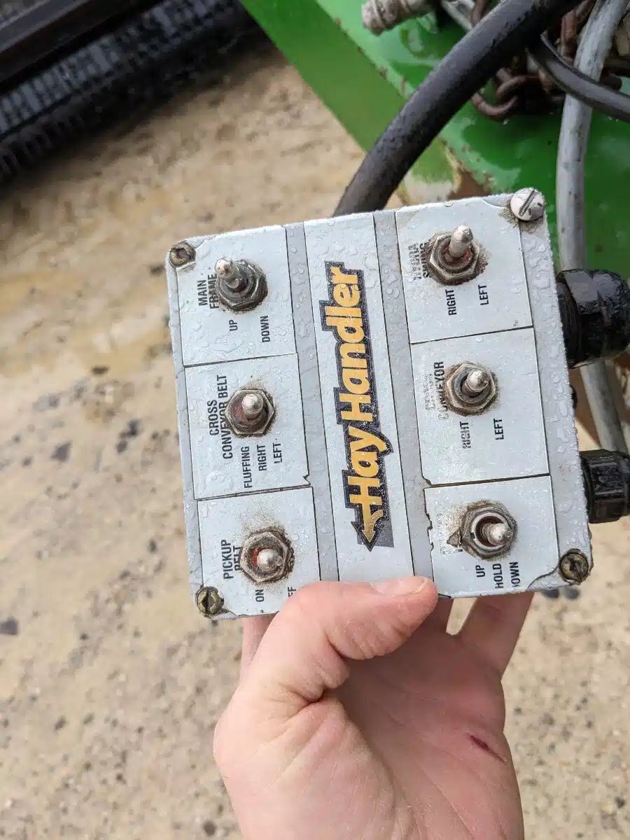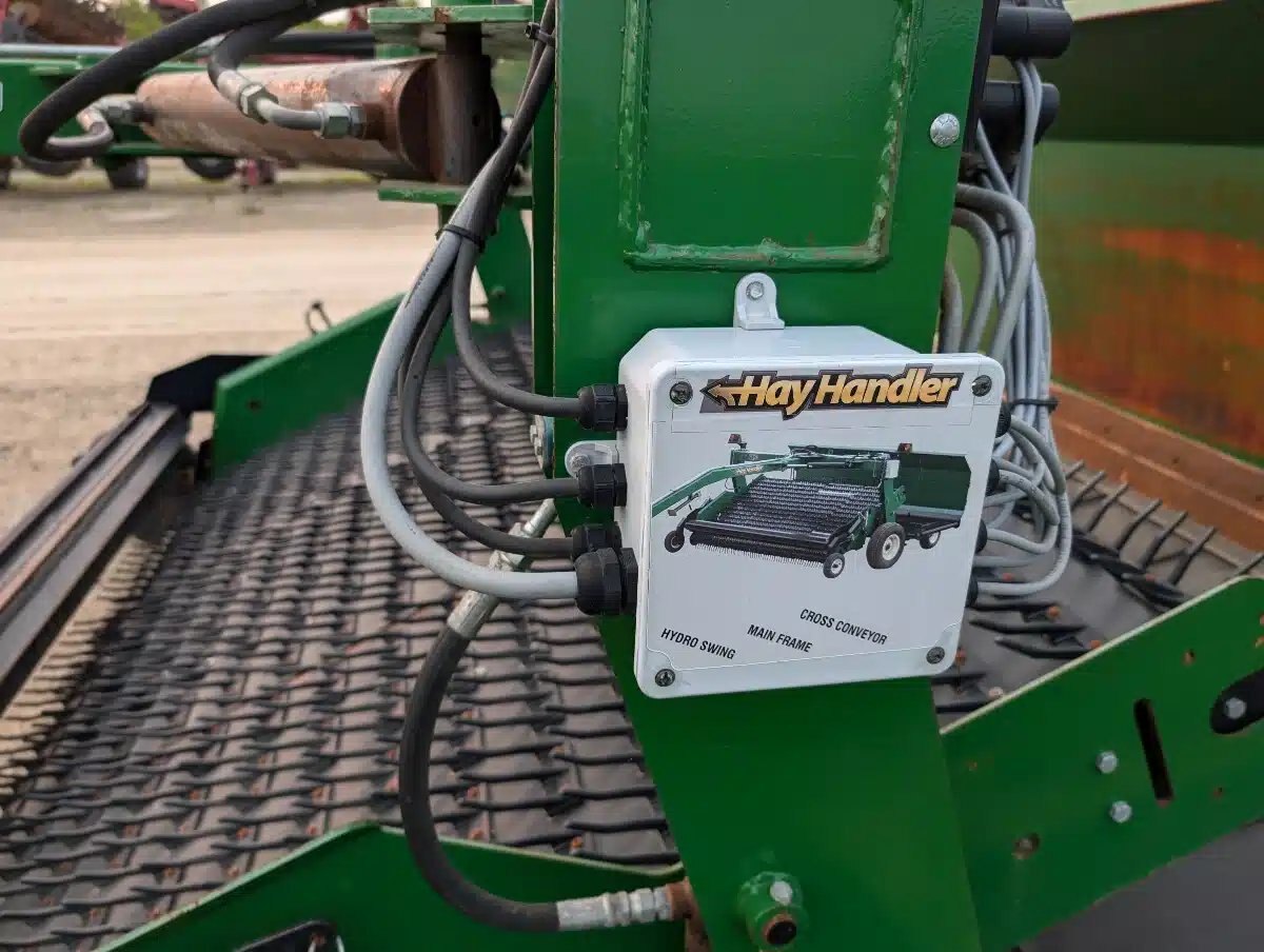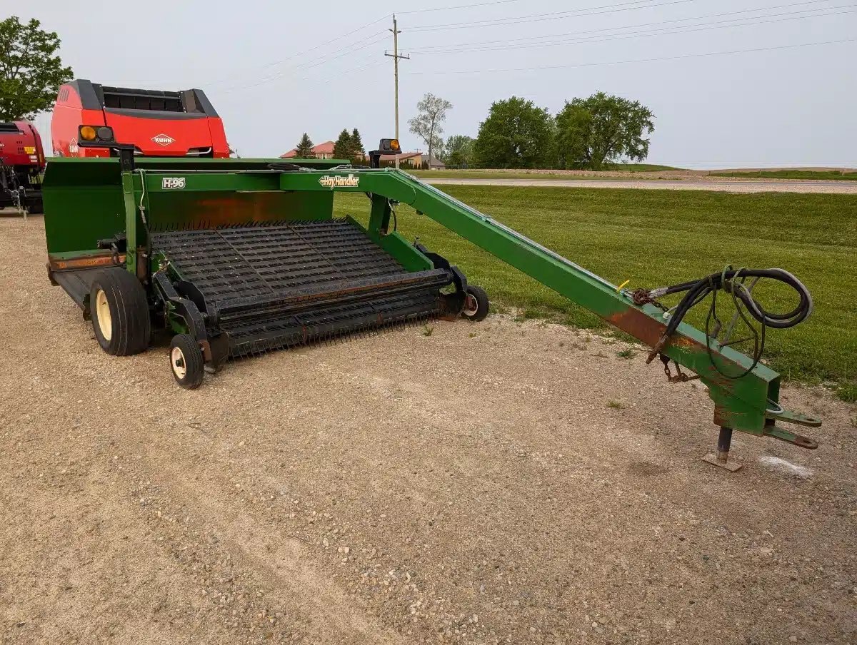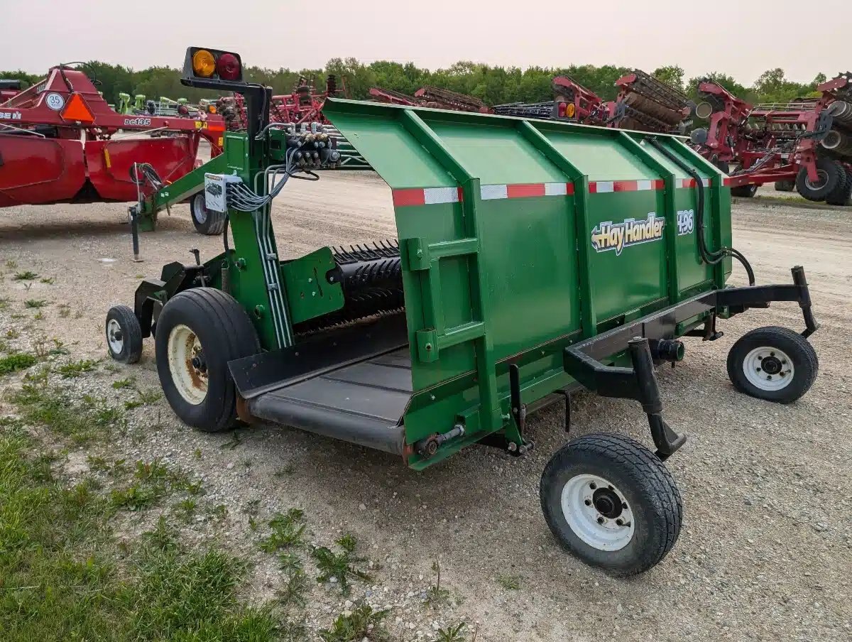 **Equipment Ontario January 2026 Online Auction Unit - See Consign.bid for more Details** HayHandler H-96 Herger. 8ft Wide Unit w/ Hydraulic 3 Belt Pickup, Centre Pivot, LH or RH Discharge and Electronic Controls. Good Condition.