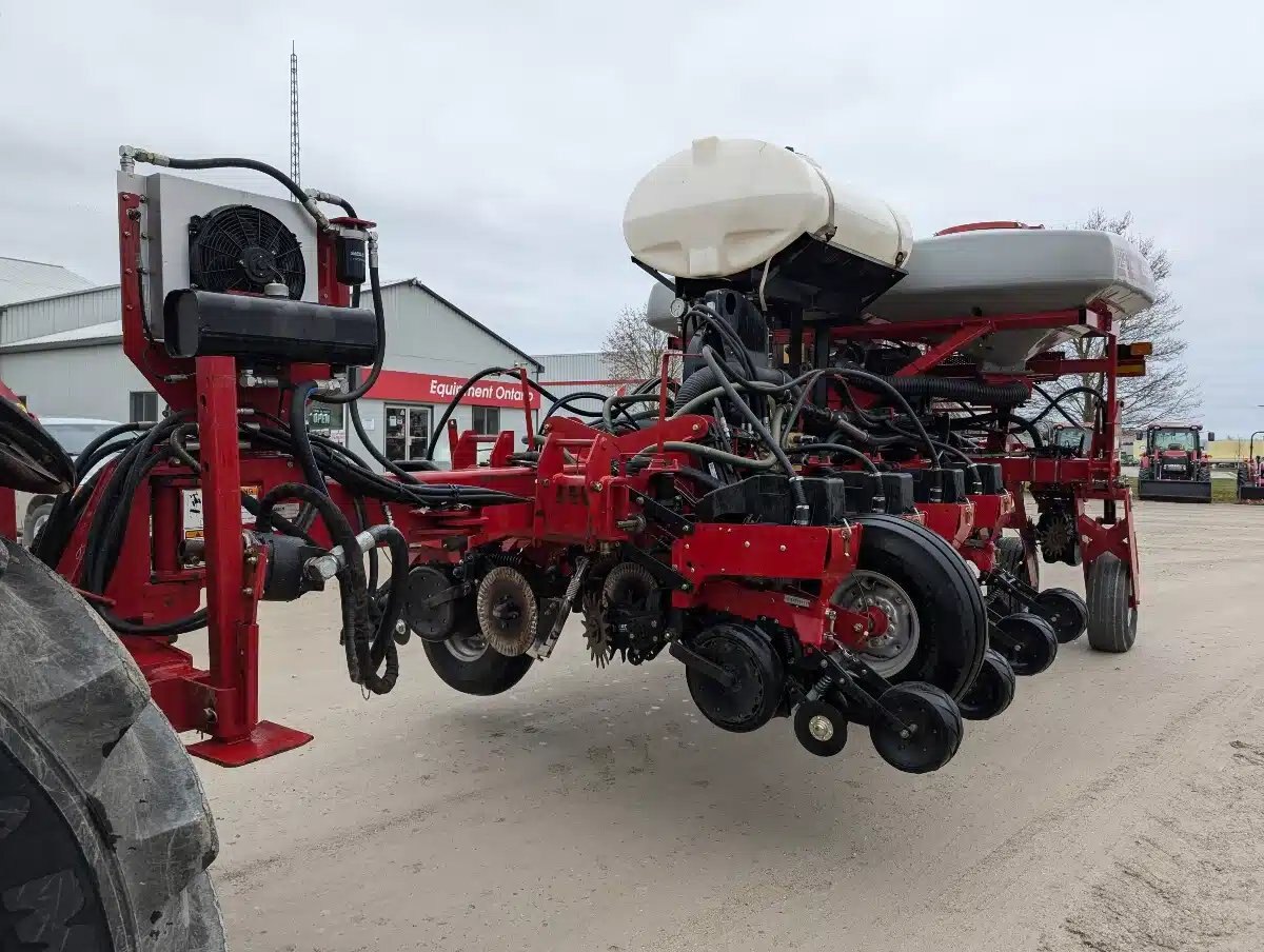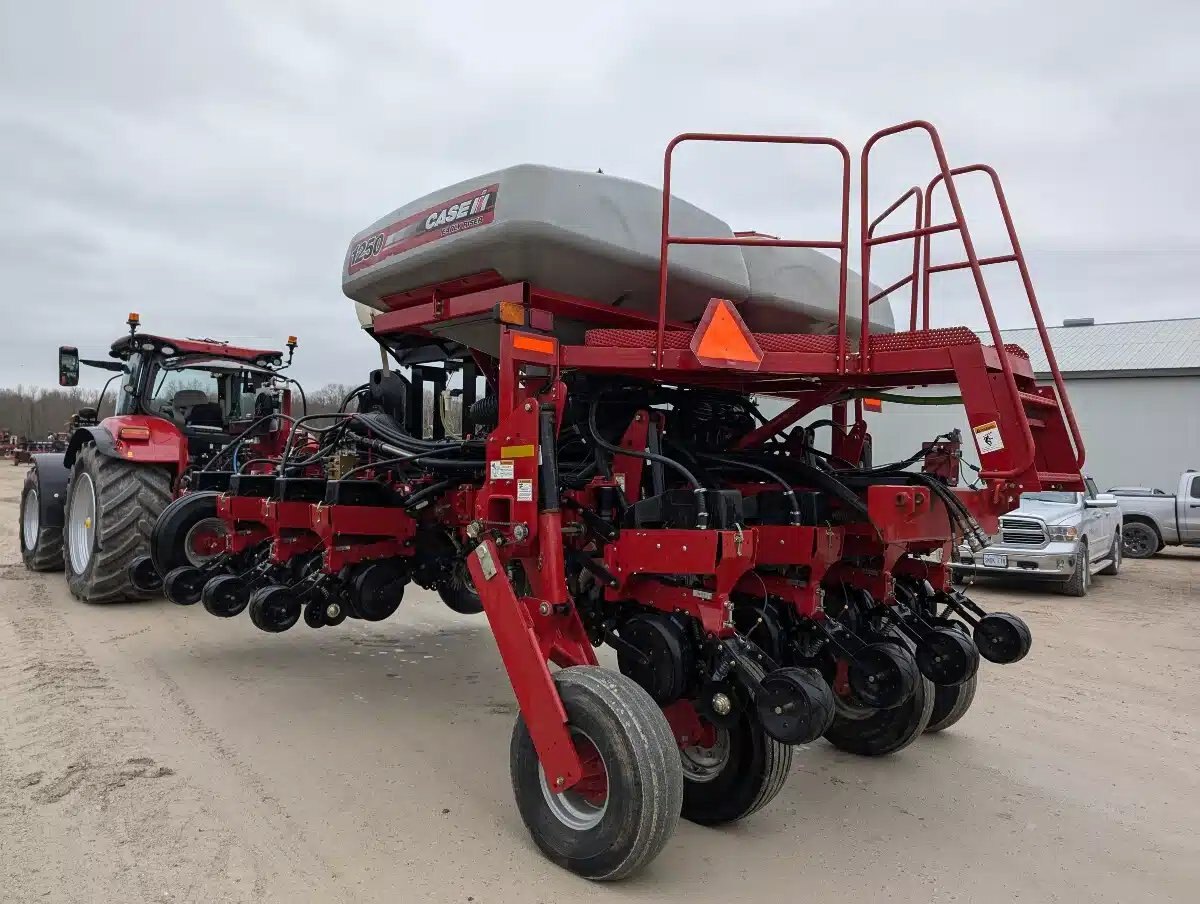 2010 Case IH 1250 Planter. 12-row Early Riser with 30" spacing, 300gal fertilizer tank, pneumatic downforce with in-cab control, in-furrow fertilizer application, variable-rate hydraulic drive with 1/2 Width Shut Off, no-till coulters and Shark Tooth residue cleaners. Includes Pro 600 Monitor and a set of seed plates for corn.