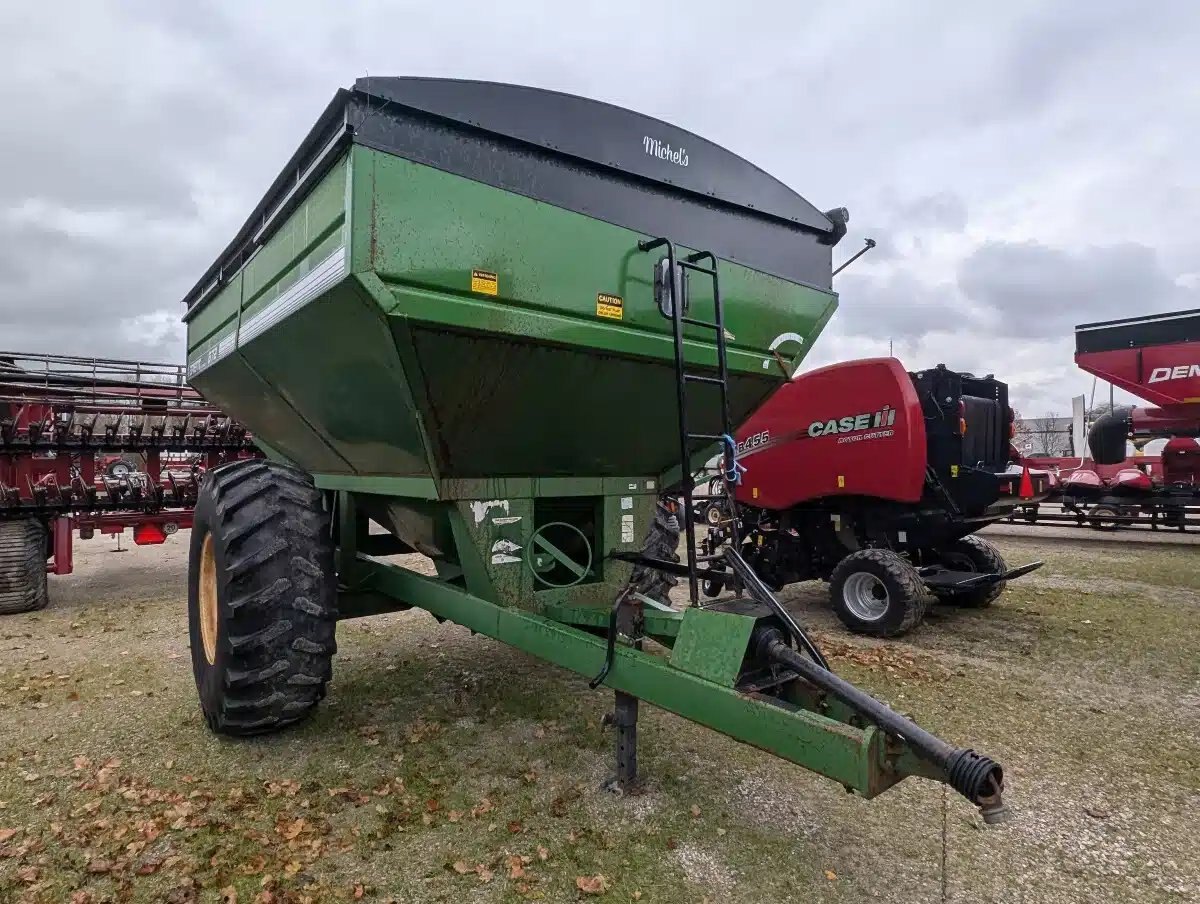 Unverferth Brent 672 grain cart. 600-650 Bu capacity buggy with LH front corner discharge, manual roll tarp, 540 pto, front ladder, inspection windows and road lighting kit. Unit on consignment. No trade-ins.
