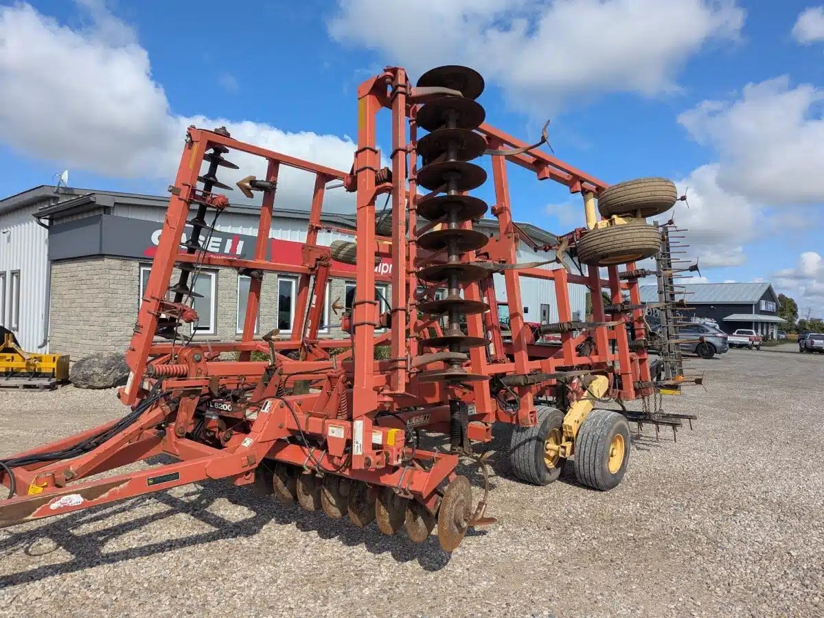 2016 Kruase TL6200 Mulch Finisher. 28ft Wide 3 Section SIngle Fold Unit w/ Front Disc Gang, 10" Sweeps, 3 Bar Harrows, Rear Hitch w/ Hydraulics and Walking Tandems