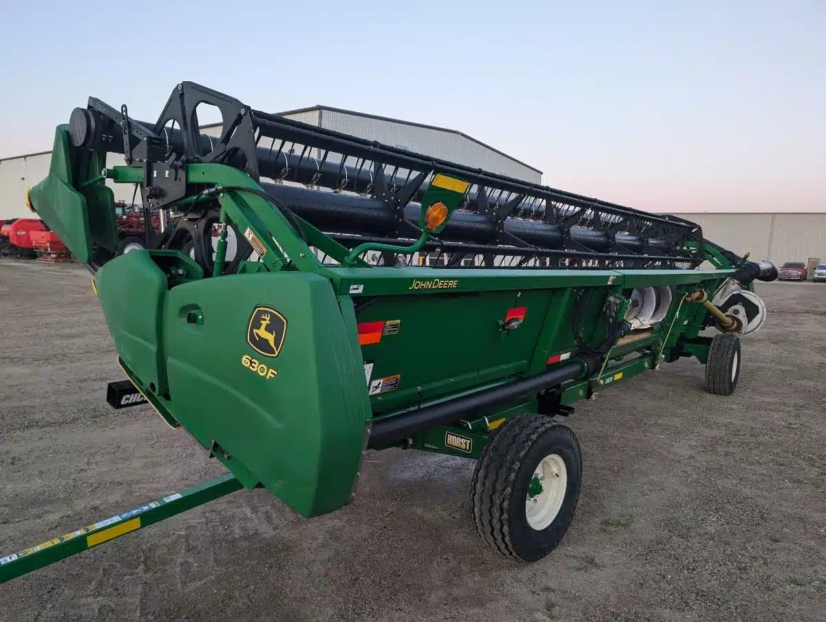 **Equipment Ontario January 2026 Online Auction Unit - See Consign.bid for more Details** 2014 John Deere 630F Flex Head. 30ft Wide W/ Full Flex Cutter Bar, Single Point Hydraulics and Crary Air Reel w/ Head Mounted Fan. Header Carts Available but not Included.