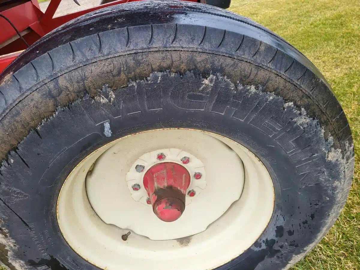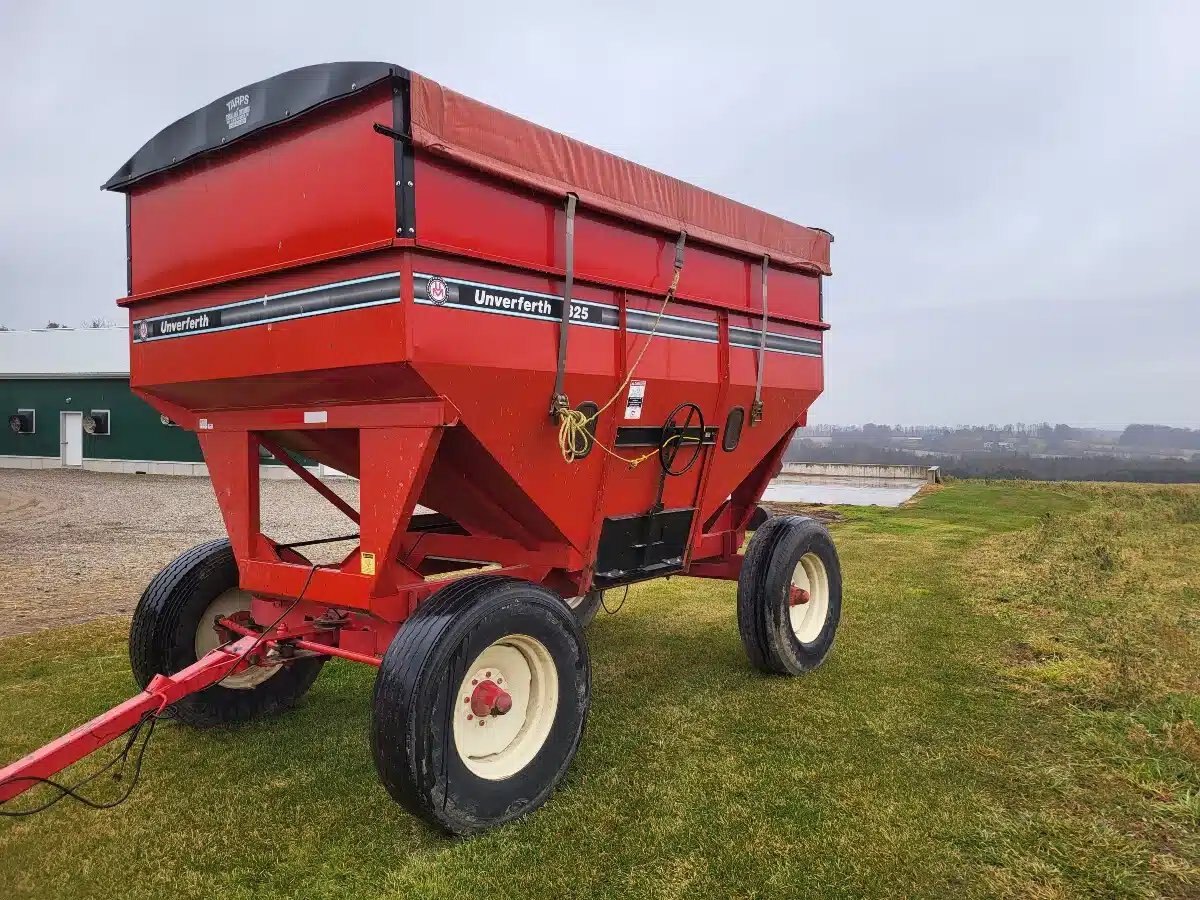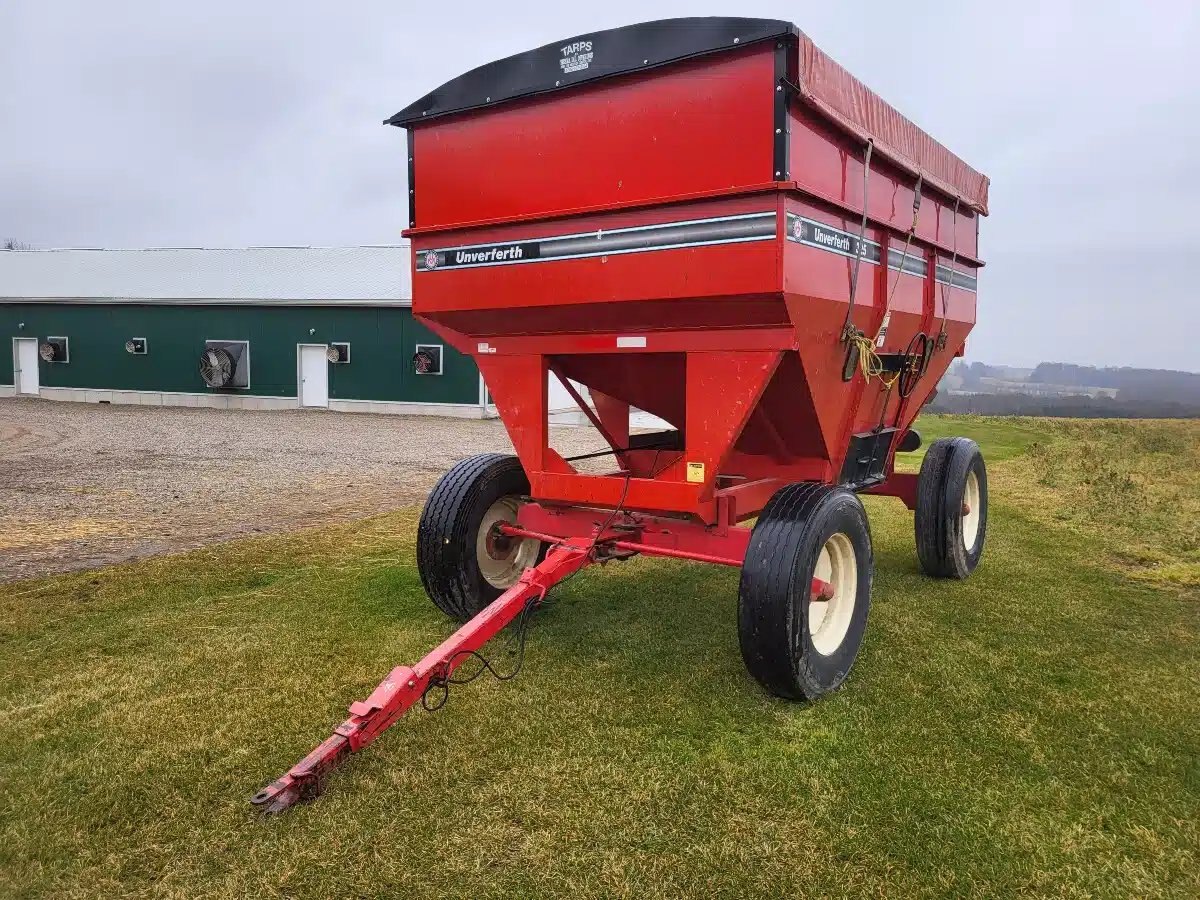 Unverferth 325 Gravity Wagon. 450 Bu Cap Unit w/ LH Unload, Tarp, Light Kit and Sight Glass. Mounted on a 12ton Horst 205 Running Gear w/ Used Truck Tires.