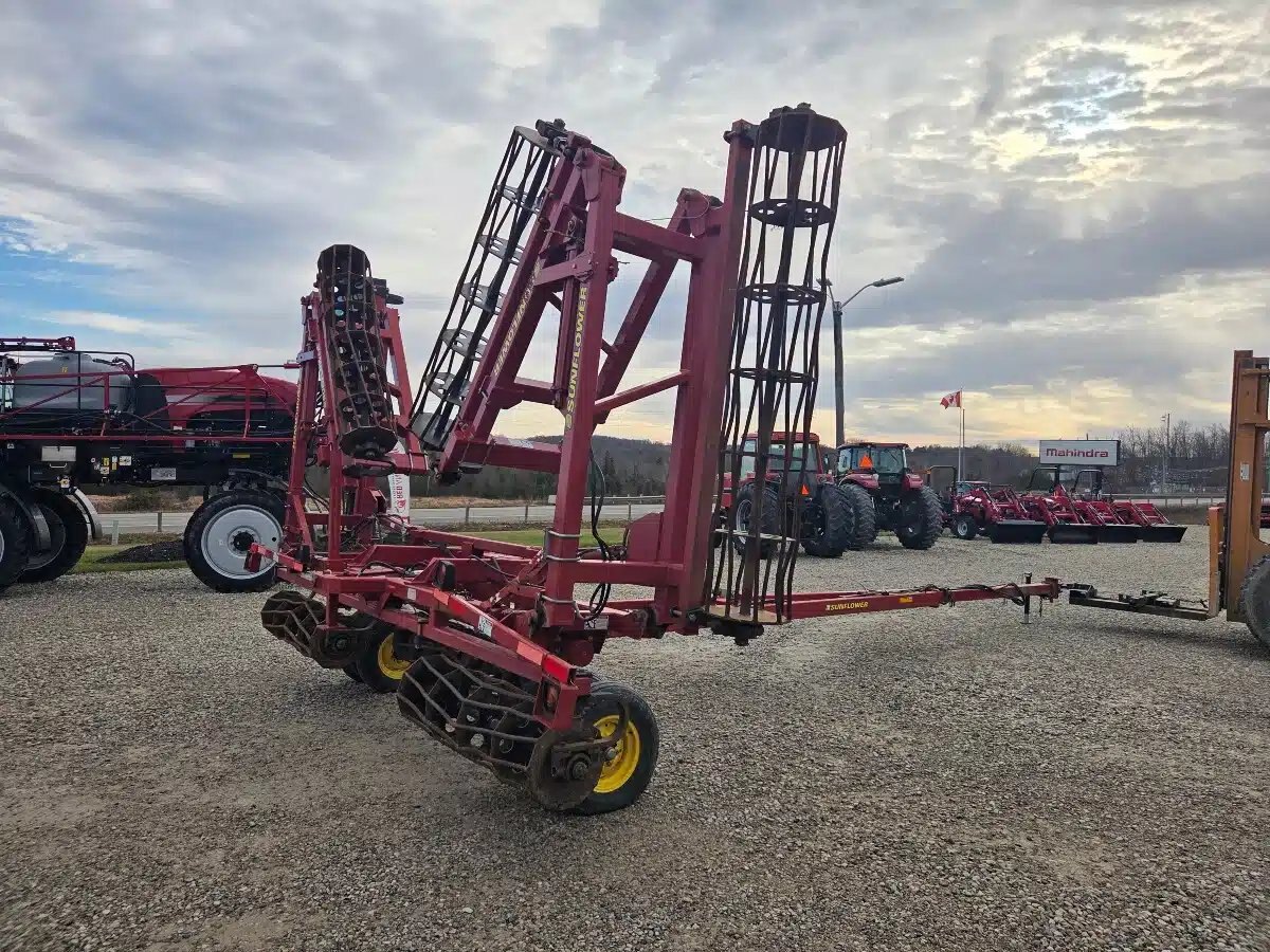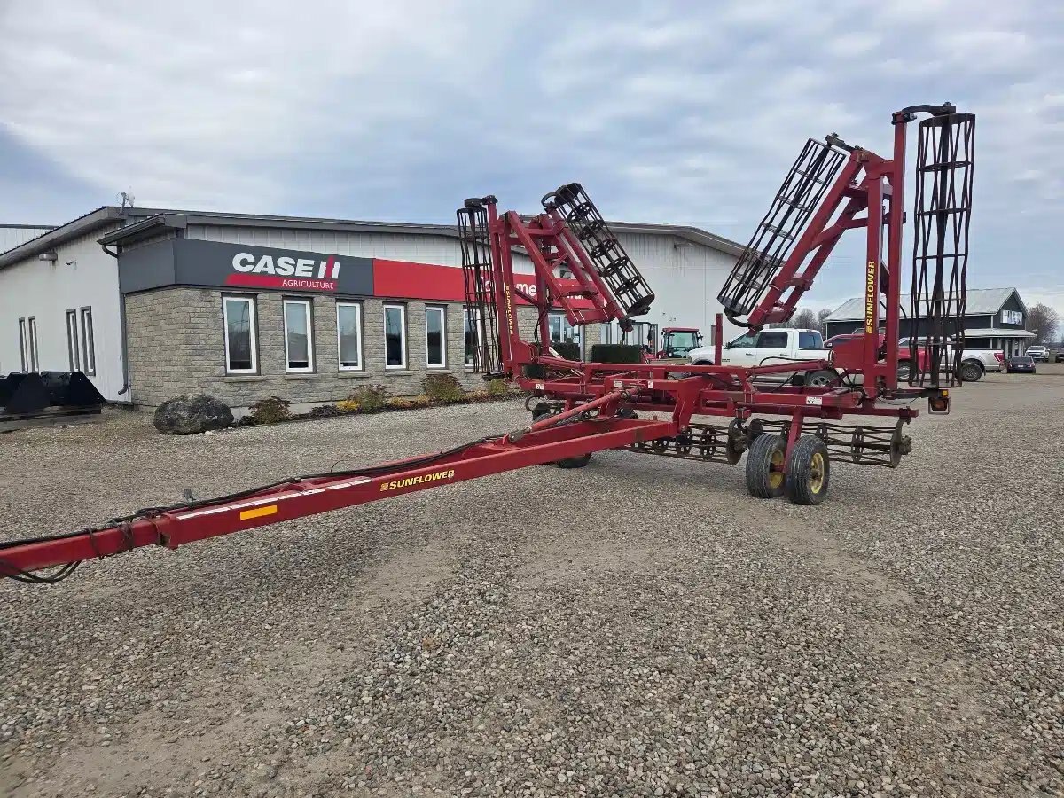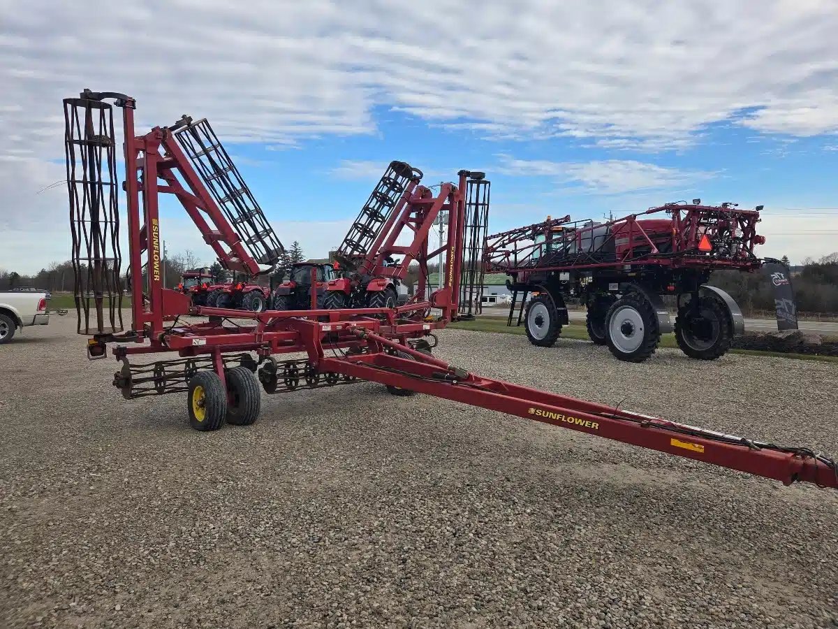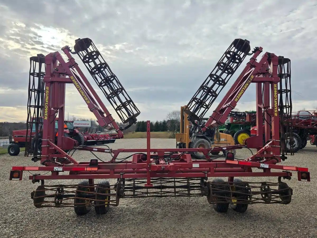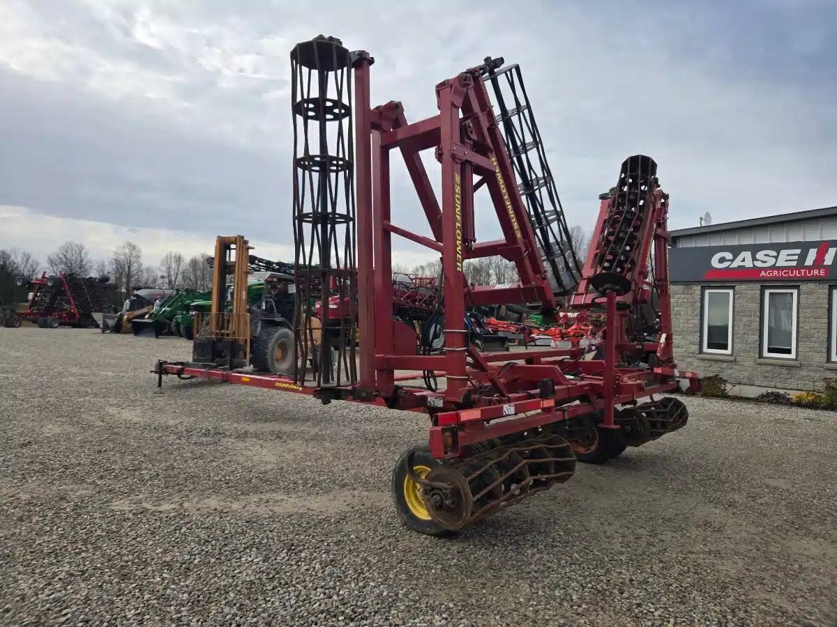 2006 Sunflower 7252-42 Crumbler. 2006 42ft 5 Section Double Fold w/ Adjsutable Tongue, Round Bar Baskets and Dual 9.5L-15 Wheels.