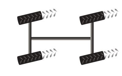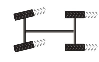 Two- and Four-wheel automatic-synchronizing steering with CRAB steer option.