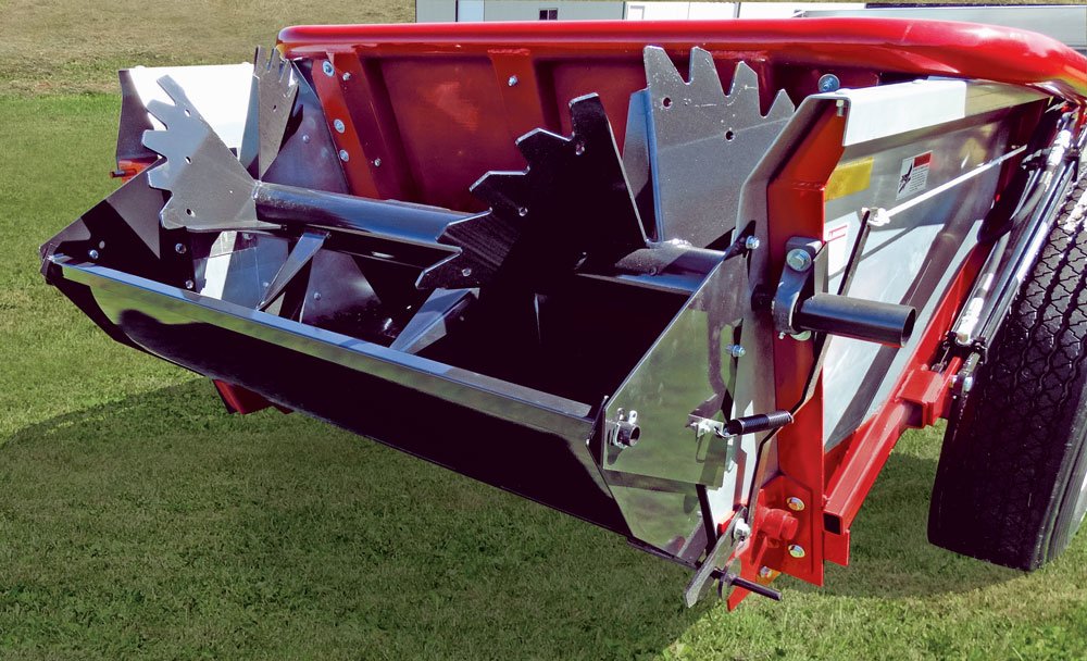 • Spreader box sides are constructed of powder-coated steel.