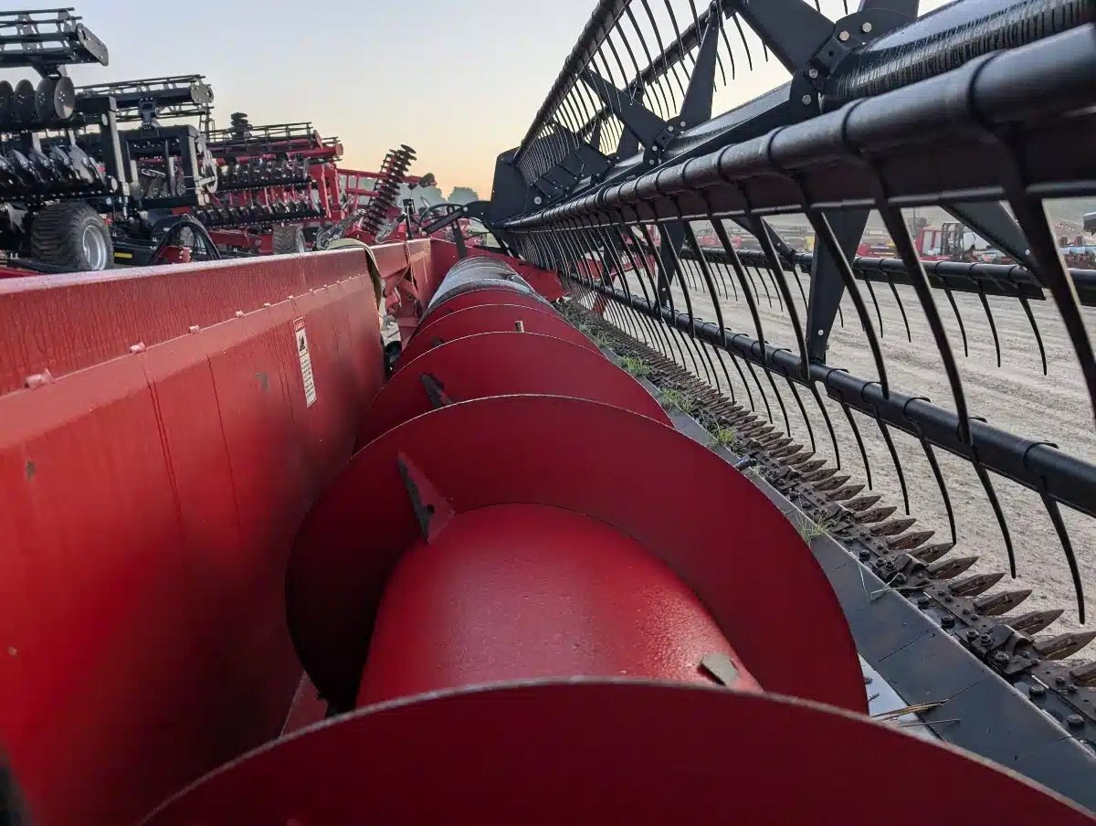 2010 Case IH 2020 Flex Head. 25ft Auger Head w/ Stainless Steel Floor, Single Point Hook Up, CIH Knife & Guards and 6 Spline Drive Shaft. Came Off a CIH 6140 w/ Flagship Mount. Includes EZ Trail 25ft Header Cart.