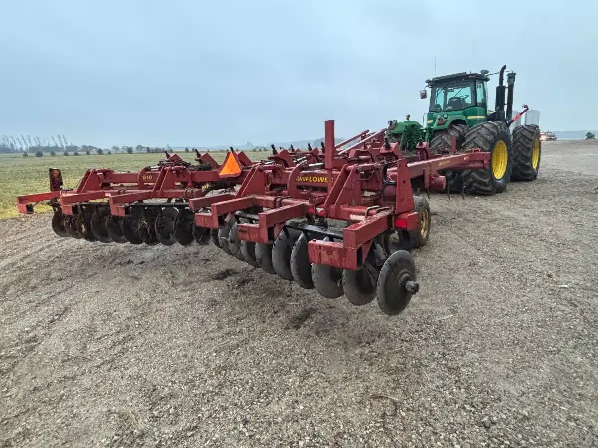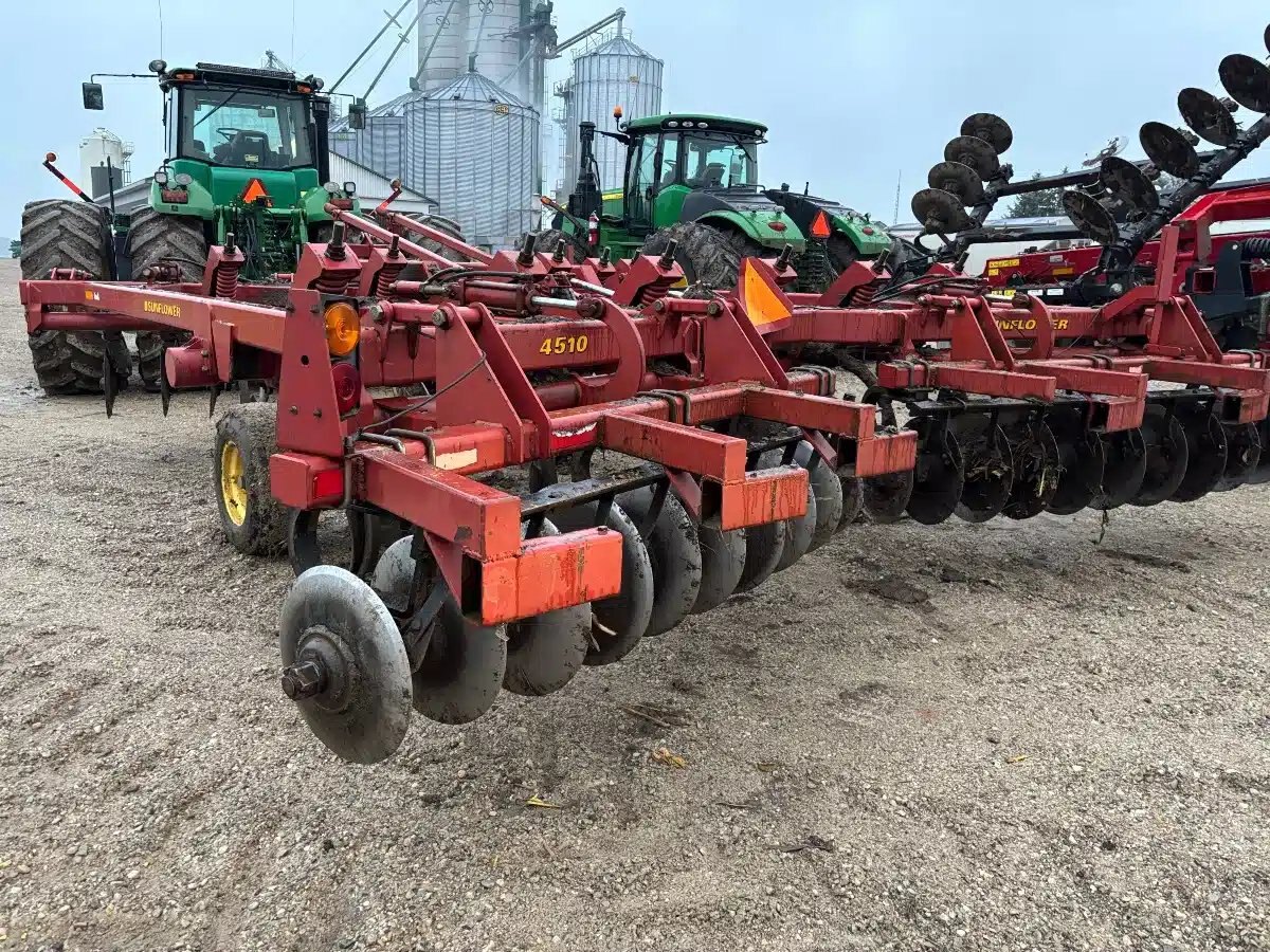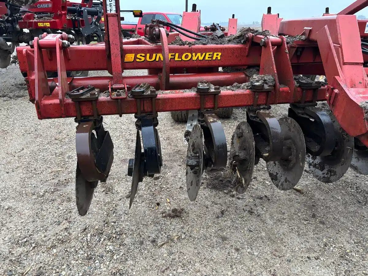 2004 Sunflower 4510-11 Disc Ripper. Single Section Rigid 11 Shank unit w/ New Twisted Shovels, One Year Old Disc @ 19", Walking Tandems, Spring Reset, Rock Flex and Road light Pkg.
