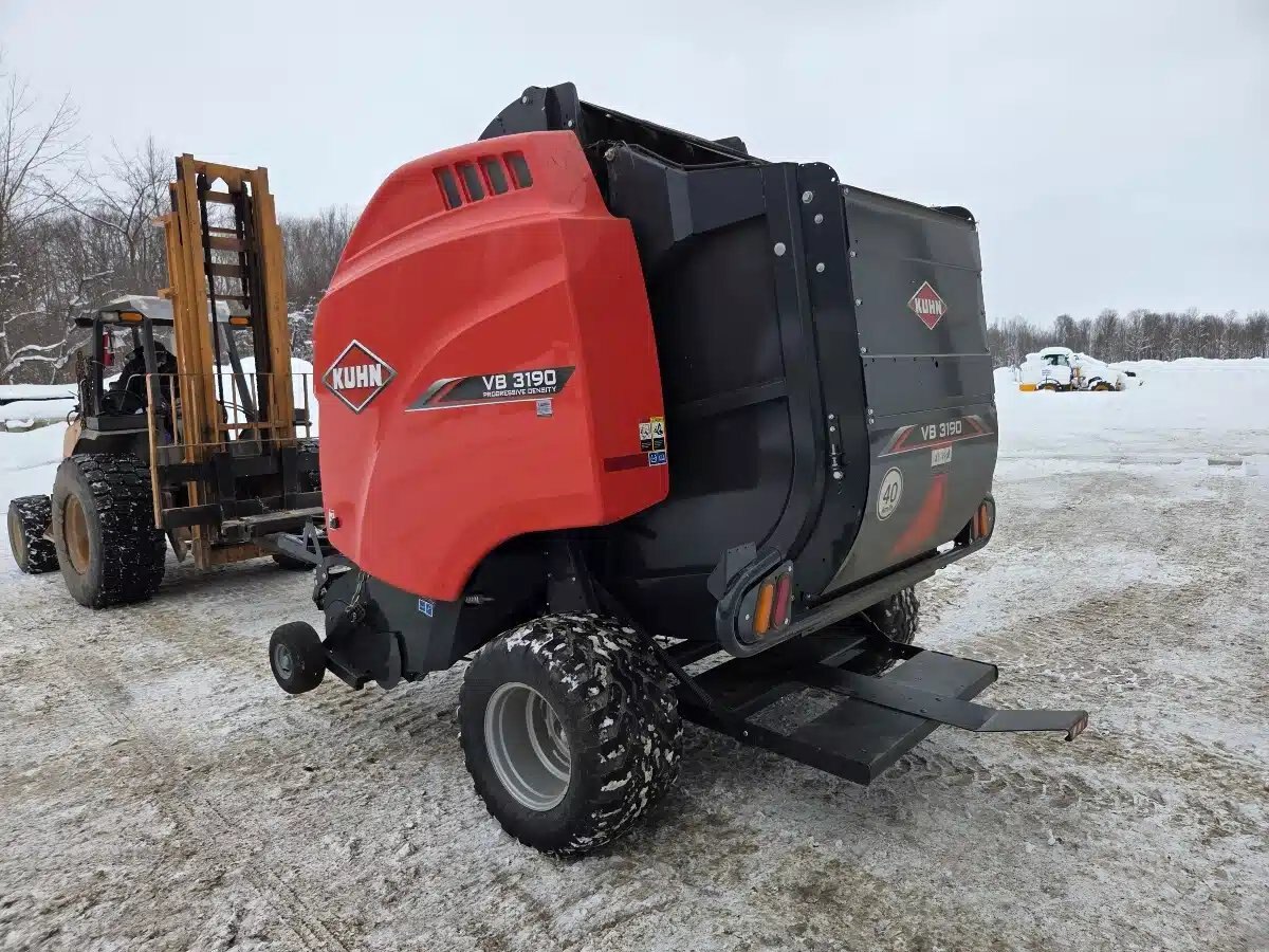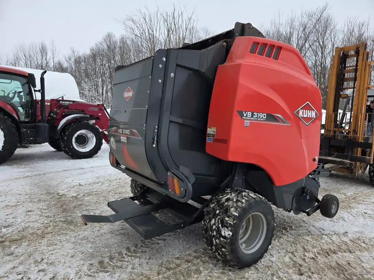2022 Kuhn VB3190 Round Baler. 4x6 Opticut w/ Drop floor, Net Wrap, 540PTO and Auto Chain Oiler. Includes CCI50 Monitor. Approx 15200 Bales.