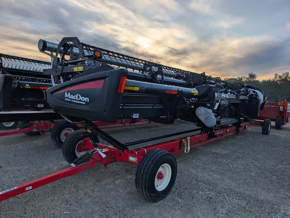 2017 MacDon FD75 Draper Head. Fully reconditioned, 35ft unit with single-knife drive, pneumatic system and splined drive shaft. Fits CIH combines. Header carts available but not included.