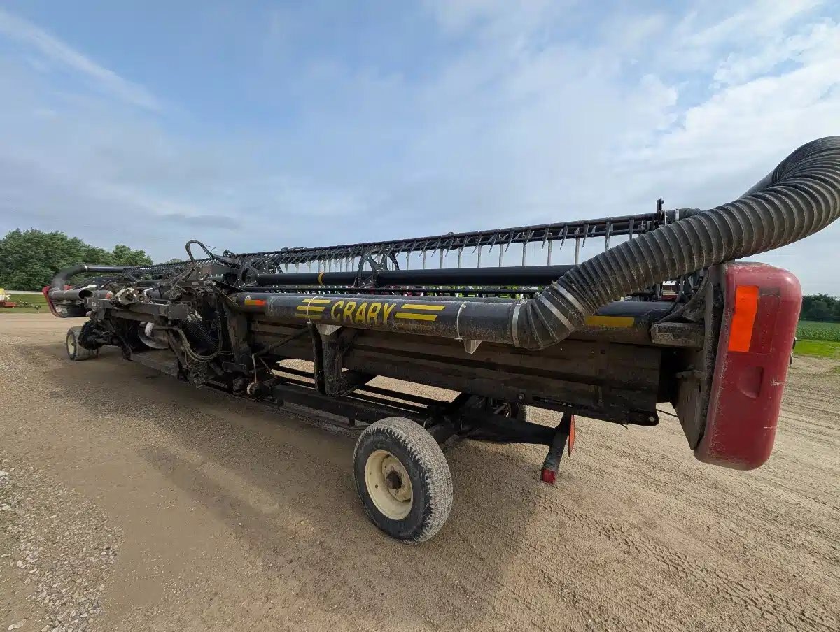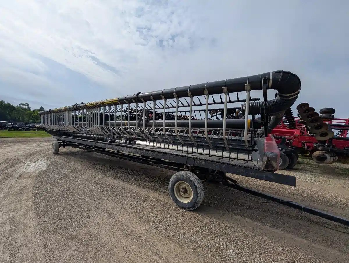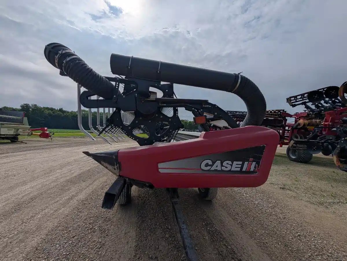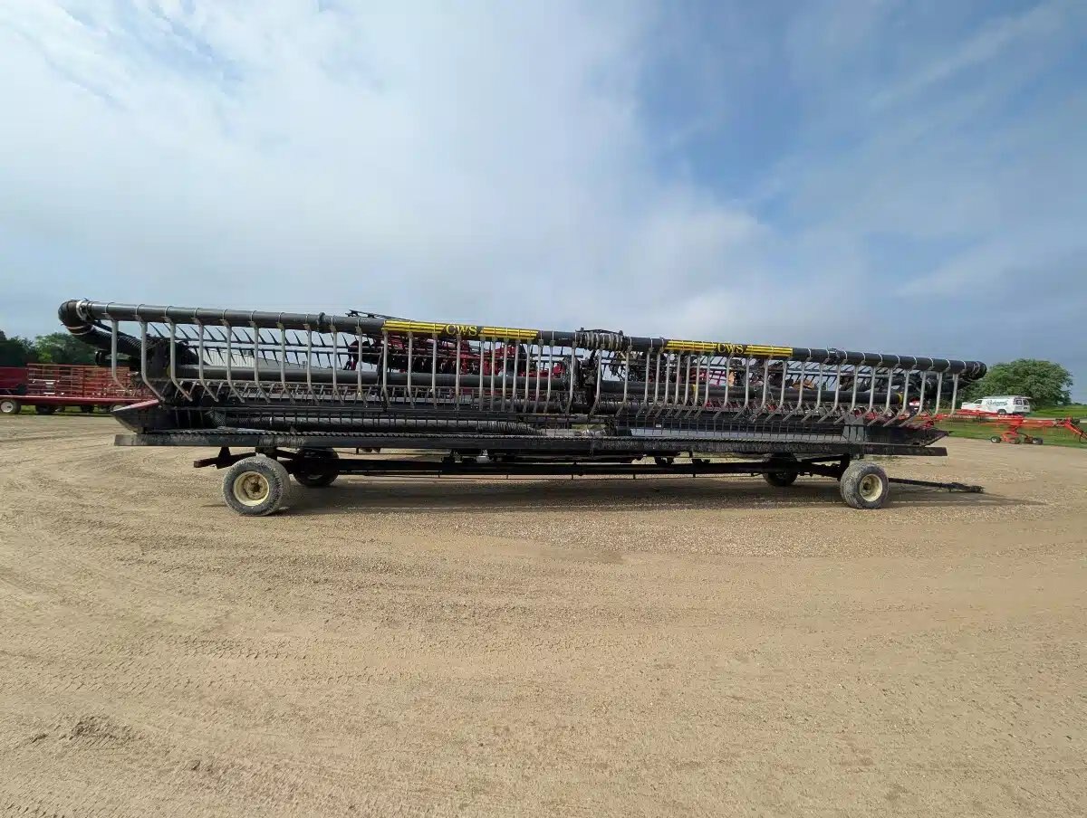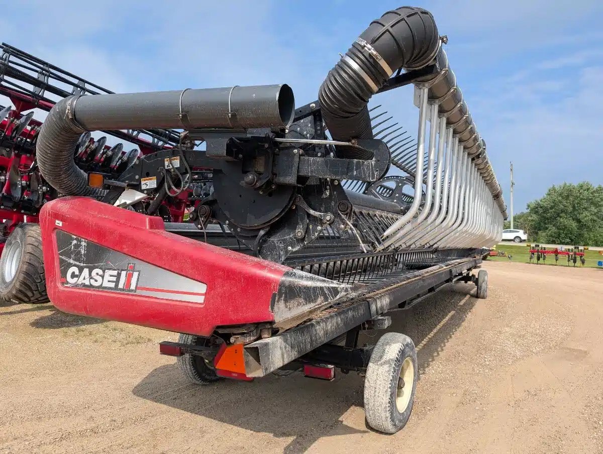 2011 Case IH 2162 Flex Draper Head. 40ft Double Knife Drive w/ 3" Knife Gaurds, AWS Brush Kit and Crary Air reel Sytem e/ Head Mounted Fan. Unit fits Case IH Flagship Combines. Includes Horst CHCF Header Cart Stock Number T04614.
