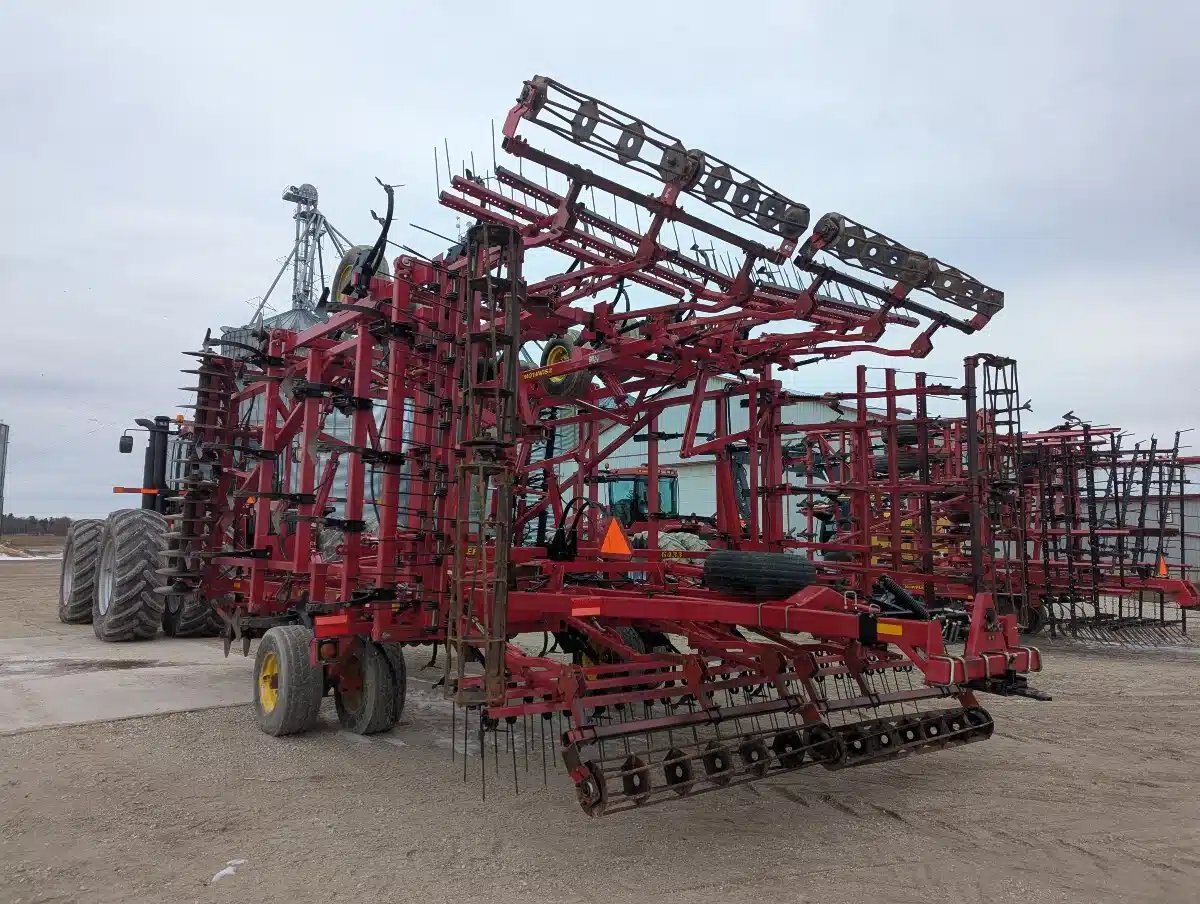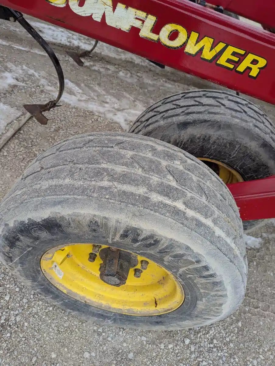 6433 Sunflower Mulch Finisher. 42ft Five Section Triple Fold, Hydraulic Front Disc w/ Scrapers, C Shanks w/ Bolt on Sweeps, 3 Bar Coil Tine w/ Round Bar Rolling Baskets, Walking Tandems and Rear Hitch.