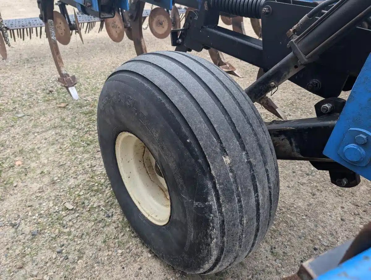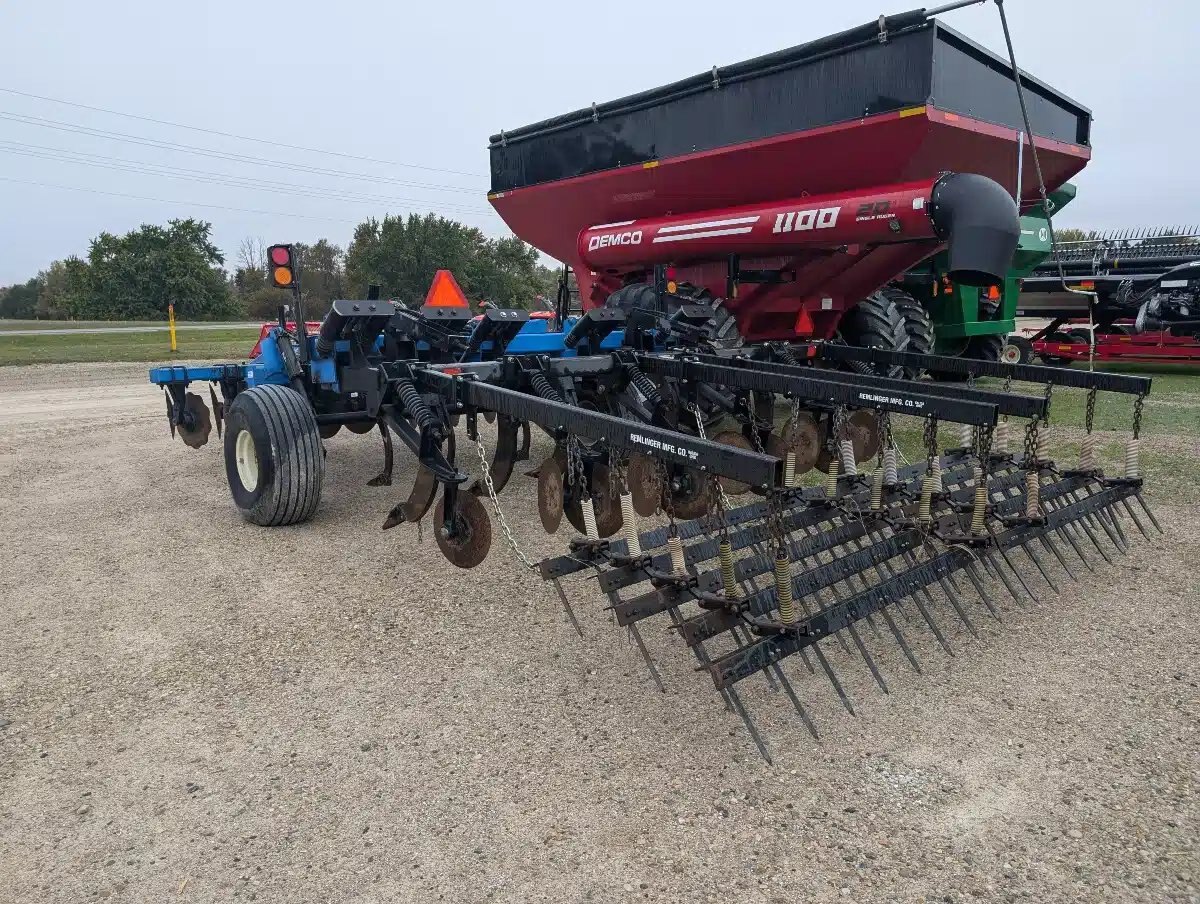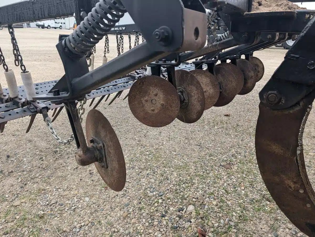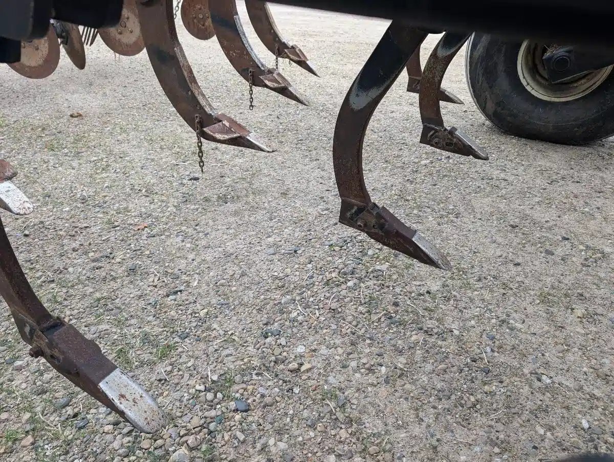 DMI 530B Disc Ripper. 14ft Wide Rigid Unit w/ 9 Shanks, Individual 22" Disc, Spring Reset, 7" points, 5 bar Spike Harrows. Rides On 16.5-16.1 SL Tires.