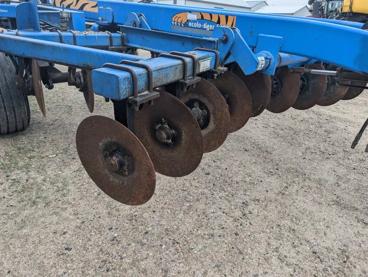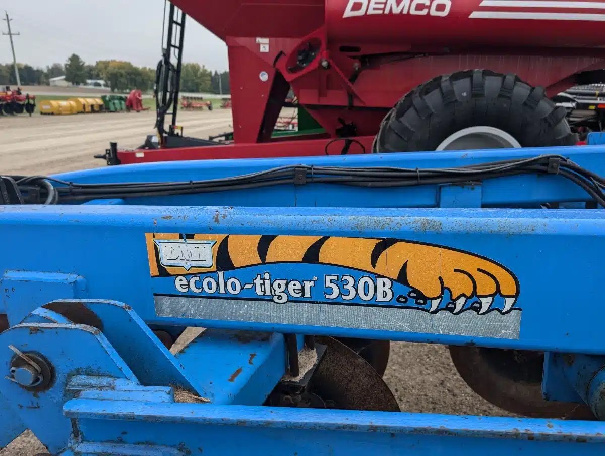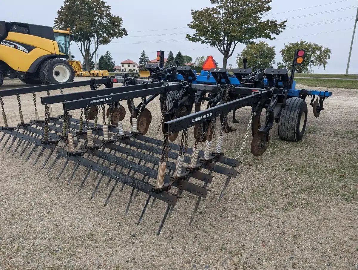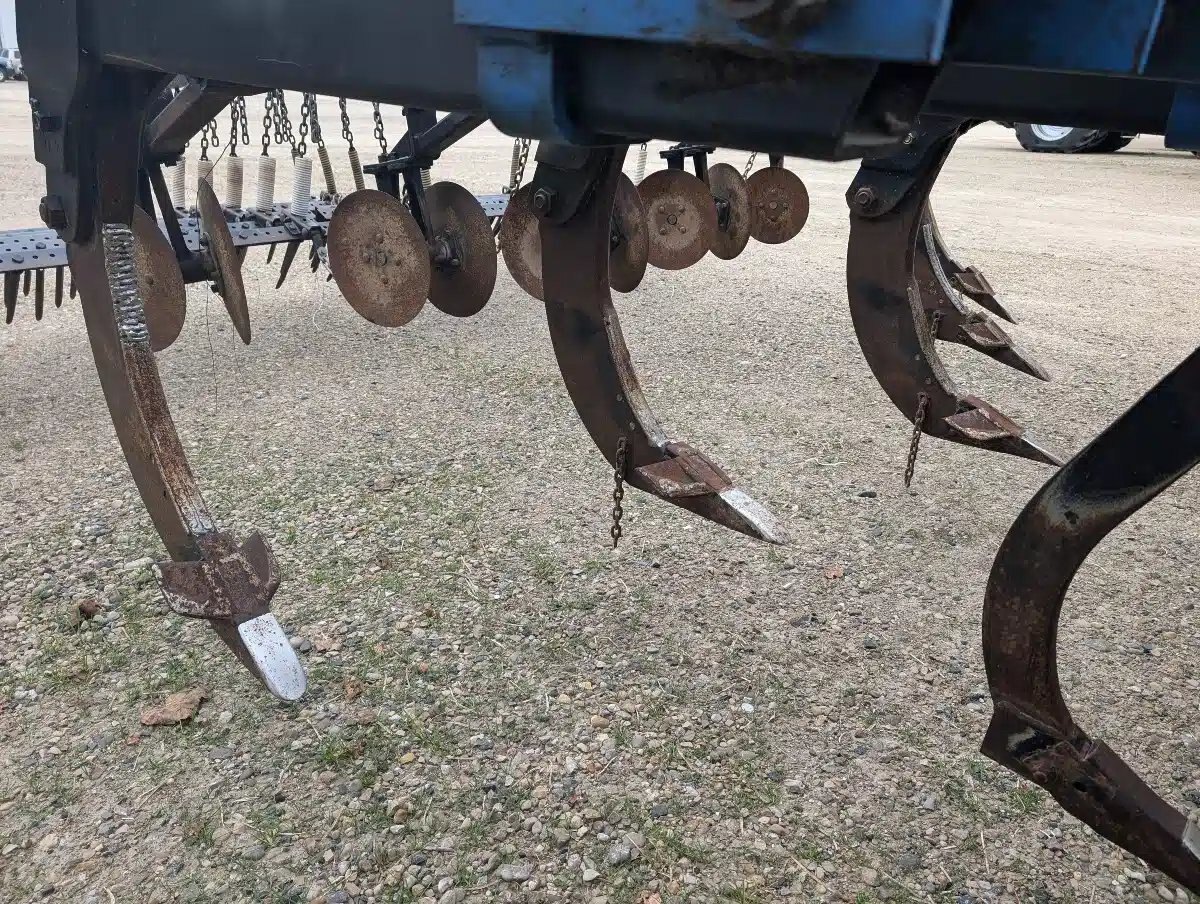 DMI 530B Disc Ripper. 14ft Wide Rigid Unit w/ 9 Shanks, Individual 22" Disc, Spring Reset, 7" points, 5 bar Spike Harrows. Rides On 16.5-16.1 SL Tires.