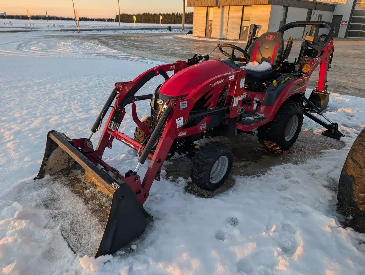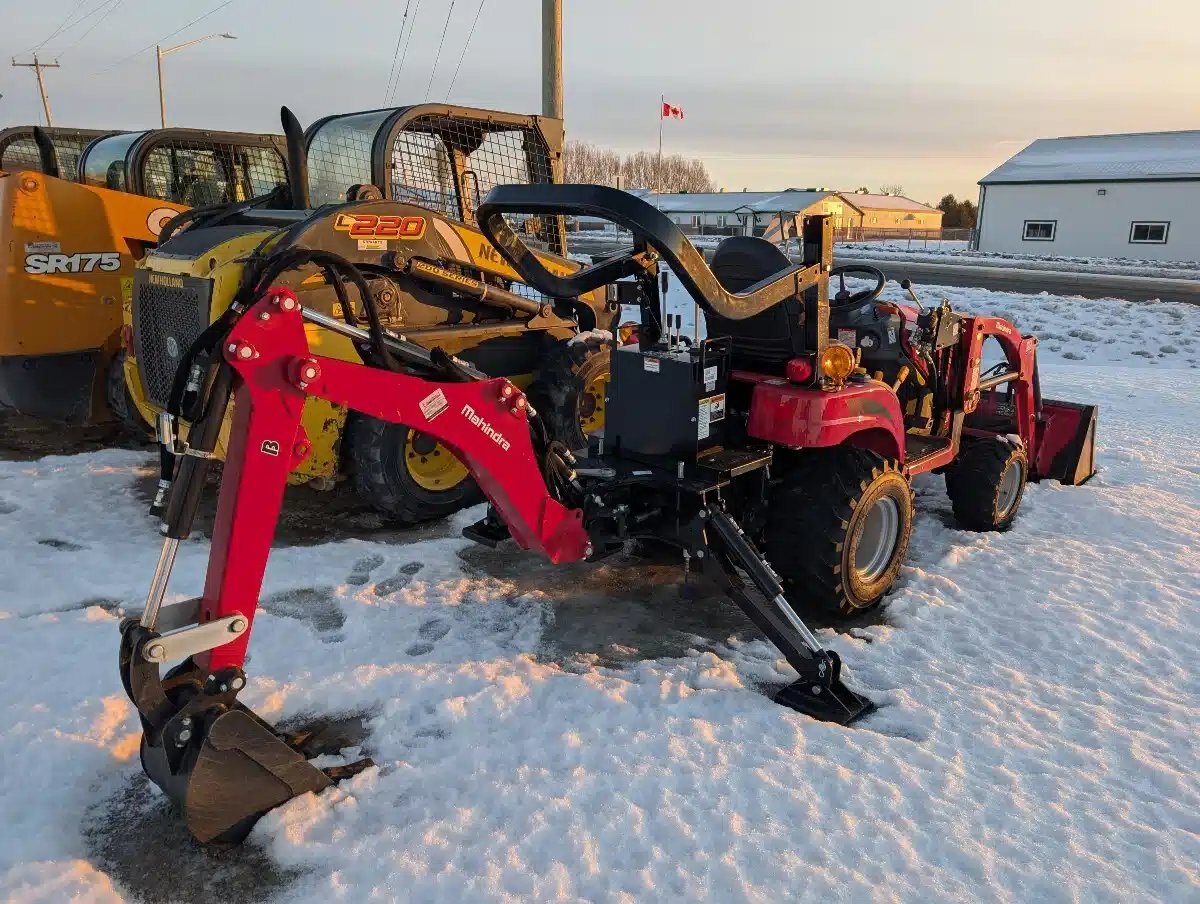 2021 Mahindra Emax 20 Sub Compact Tractor. 2021 20hp Unit w/ 3 Cylinder Yanmar Diesel Engine, Hydrostatic Trans, 4wd, Front Loader and Rear Back Hoe. Riders on Industrial Tires.