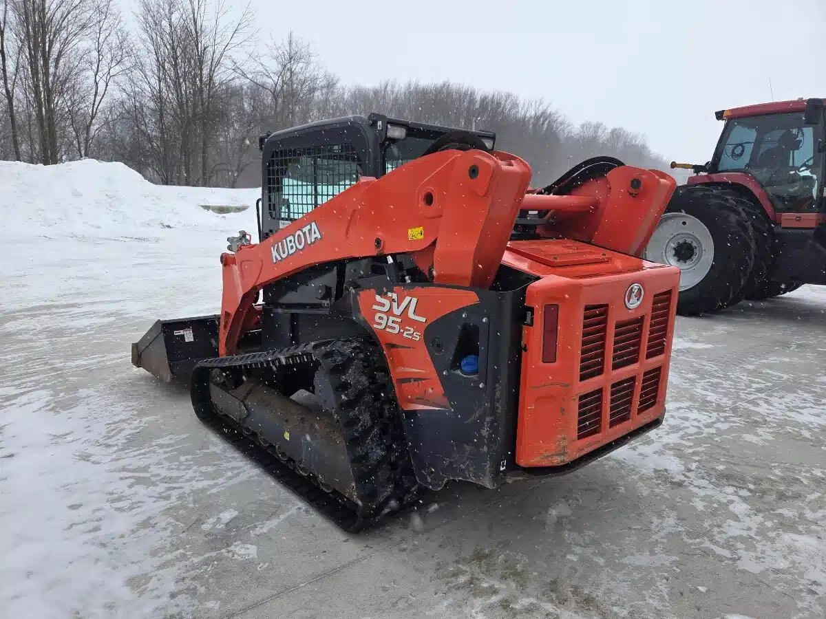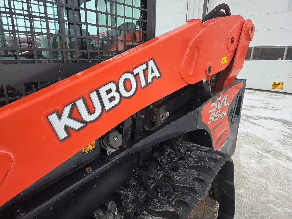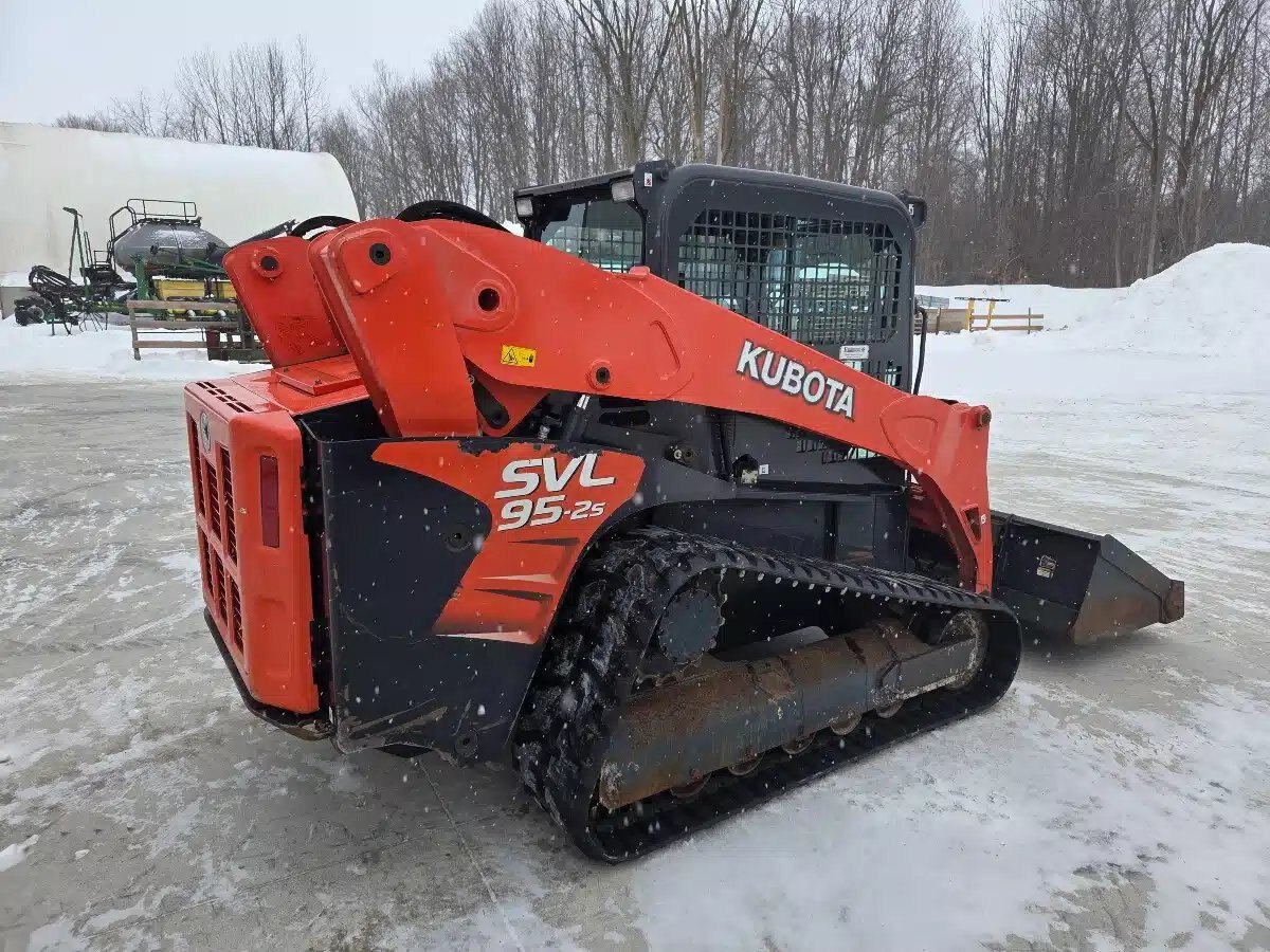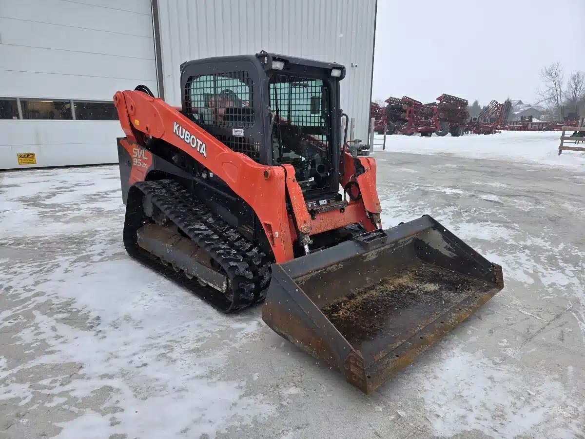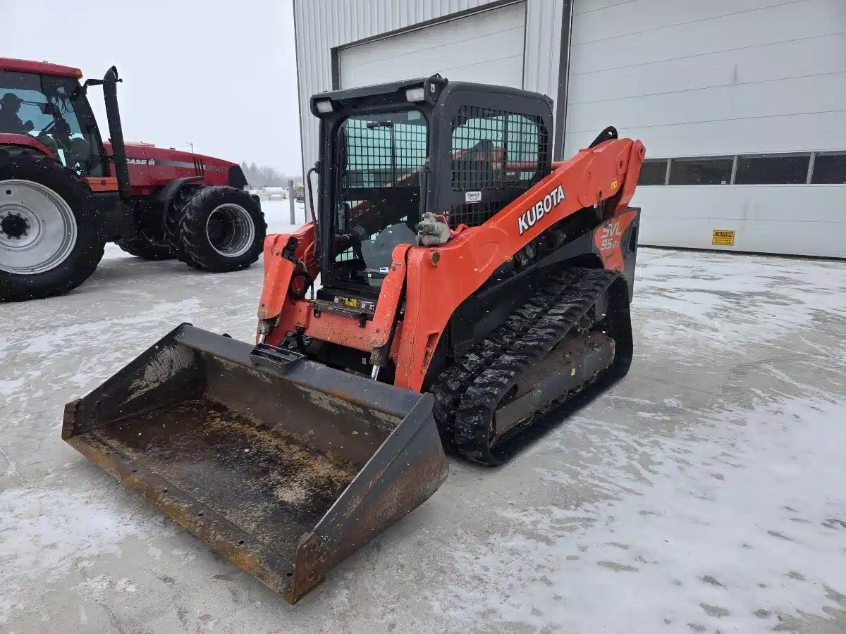 2017 Kubota SVL 95-2S Compact Track Loader. Vertical-lift unit with enclosed cab, high-flow auxiliary hydraulics, suspension seat, roll-up door and hydraulic quick coupler. Includes a bucket.