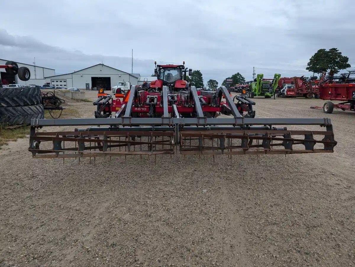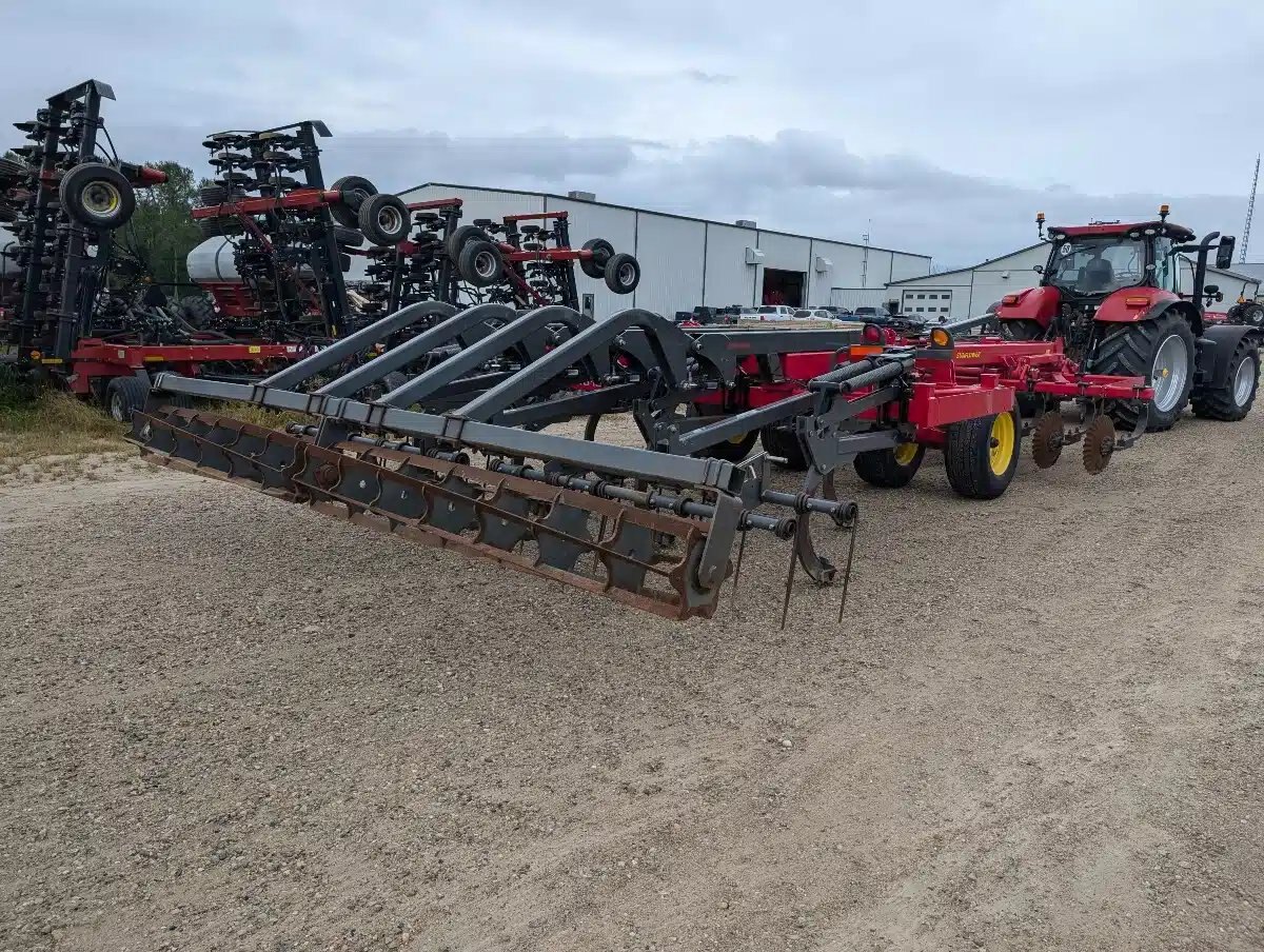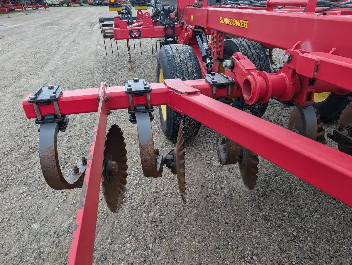 Sunflower 4610 Disc Ripper. 14ft Wide Unit w/ Cushioned Wavy Blades, Parabolic C Shanks 2 Bar Coil Tine Harrows and Flat Bar Rolling Basket.