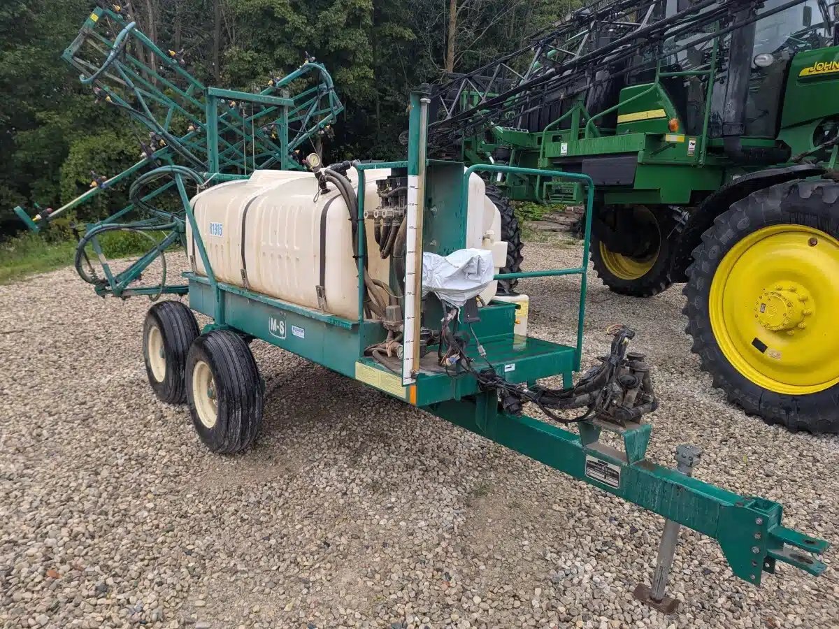 2004 MS R1915 Sprayer. 500 Gal Pull Type w/ 45ft Manual Fold Boom, Triple Tip Nozzle Bodies, 540 pto, Eductor, and Tandem Axles. Rides on 11L-15SL Tires.