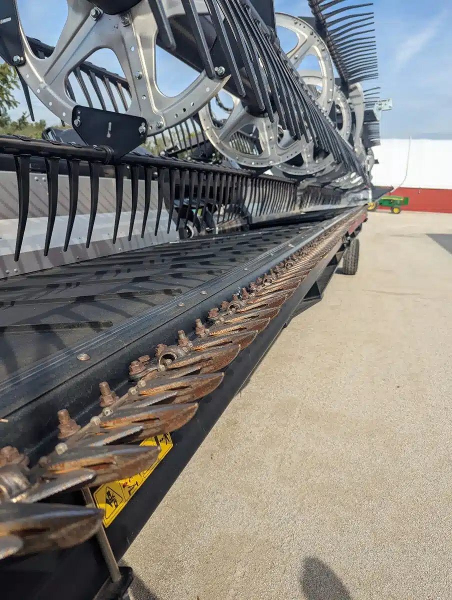 2022 MacDon FD235 Flex Draper Head. 35ft Working Width W/ Single Knife Drive, 2 Section Reel, 6 Tooth Drive Shaft and Stablizer Wheel Kit. Was on a CIH 6088 Combine. Header Carts Available but not Included.